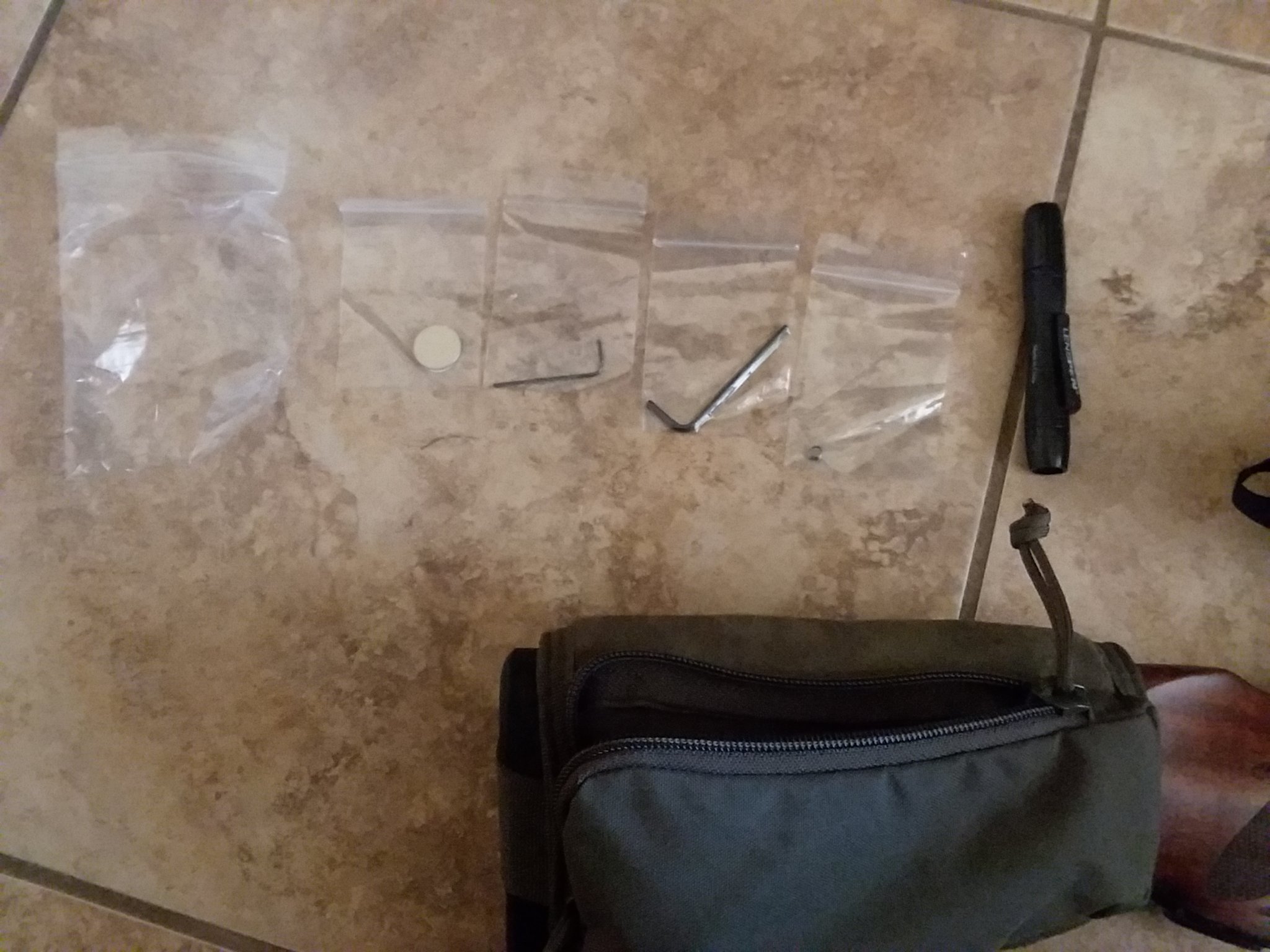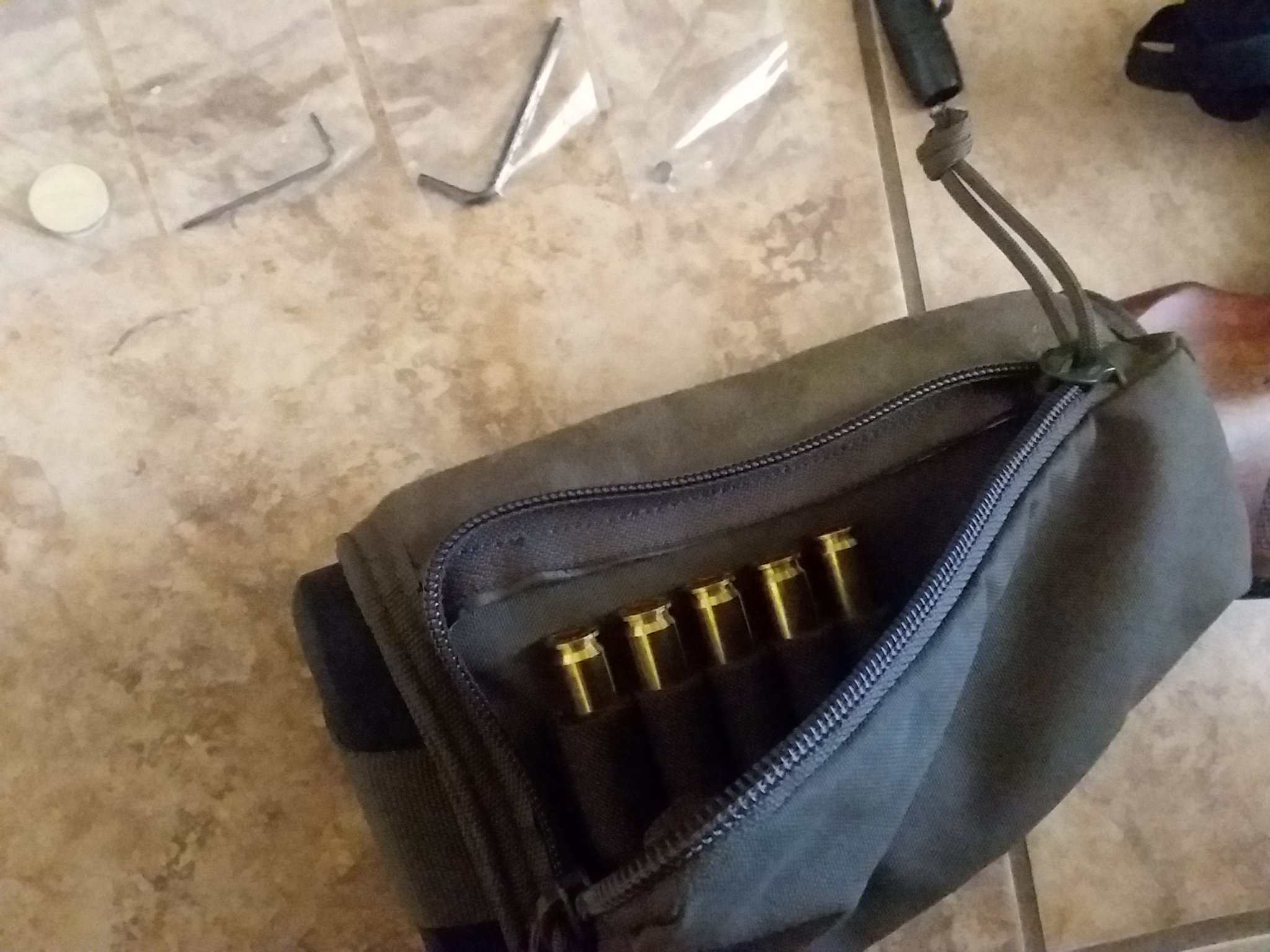 Stock riser with lens pen and allen keys and extra battery for the scope.