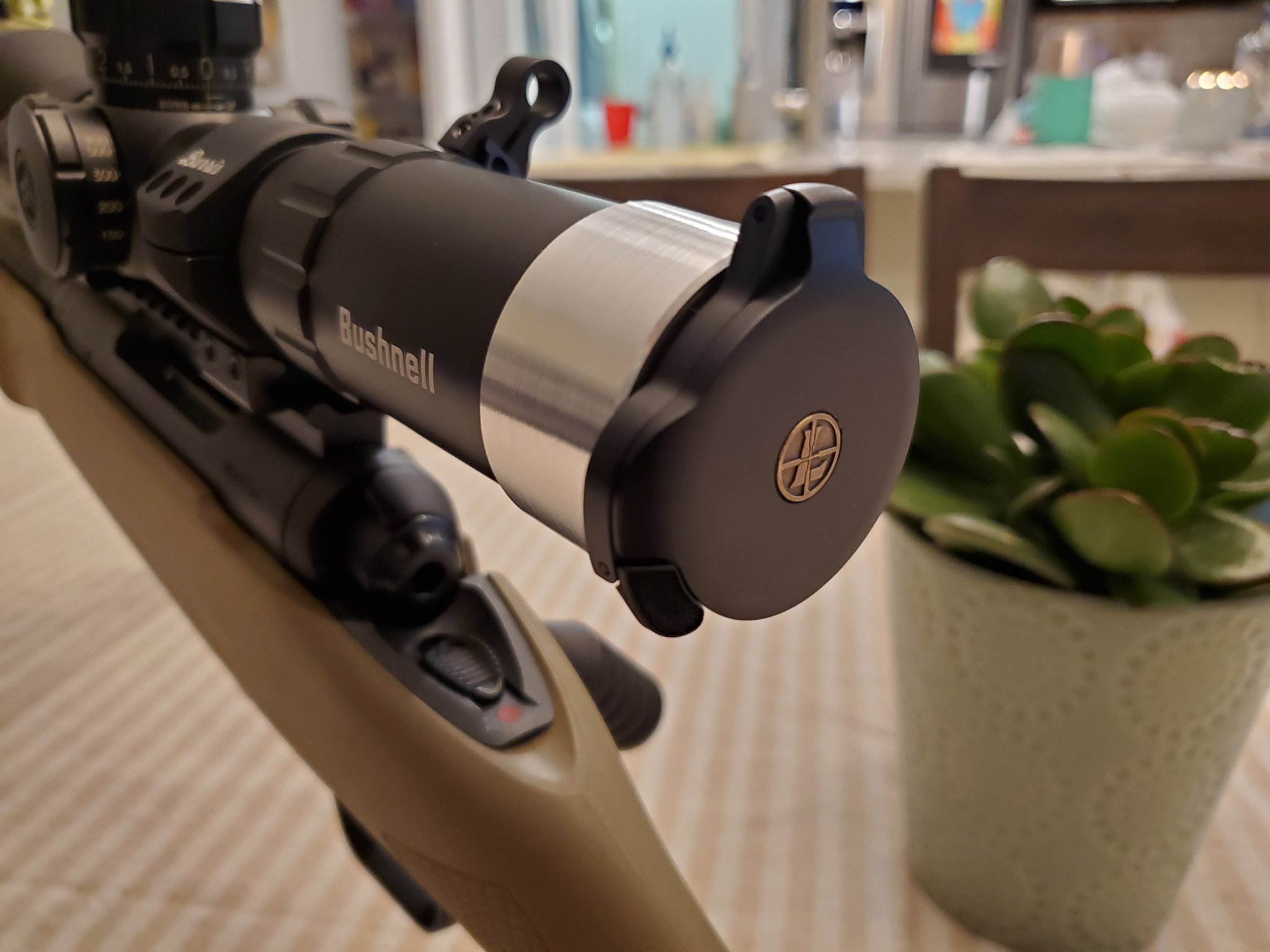 Took my sunshade to my machinist buddy.... threaded it to match a 52mm Leupold Alumina cover.
