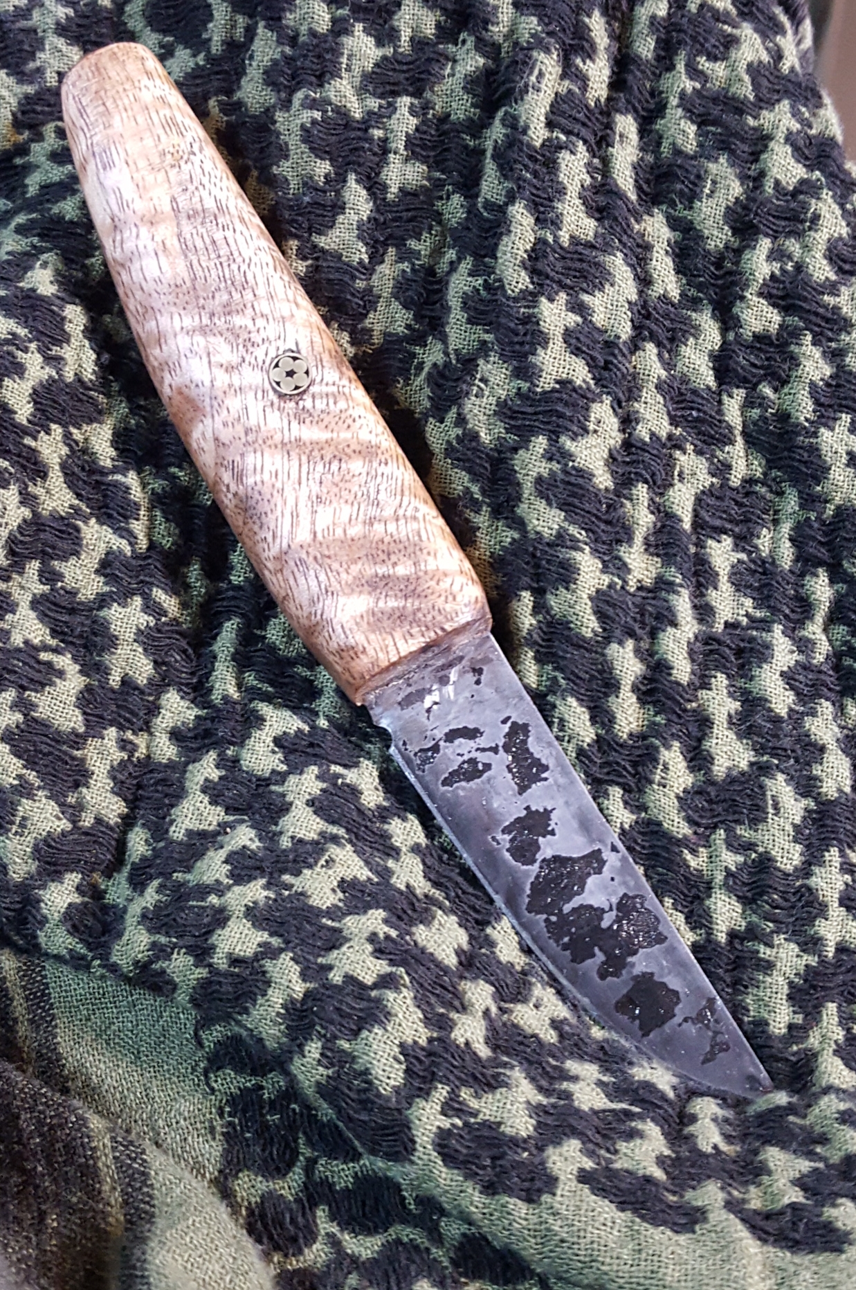 As Switch is a friend, this didn't matter a bit. He said he would make another.... whatever I wanted. And based on what he learned on the Seax... it would be even better! Which was just fine with me! I am patient and the idea was to have one of Switch's 'first' knives (someday when he is famous... it will be worth having!!!)... and to help kickstart Fire Knives and his business, not to have that Seax.