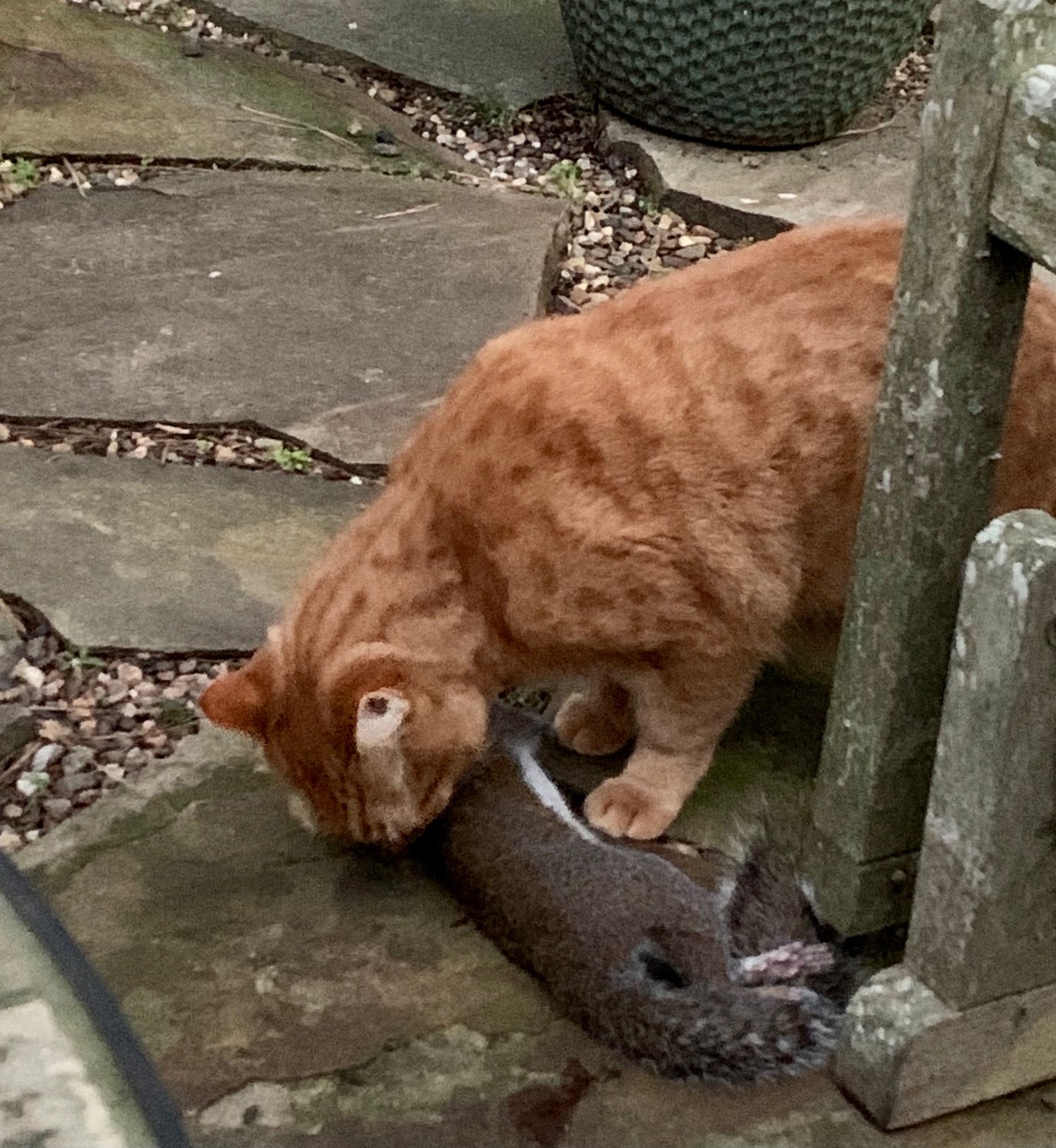 Freakin red cats, man. I had one that loved to go small game hunting with me. You didn’t have to feed him(we did). The barn swallows used to swoop him. You never saw a cat lay so flat to the ground. Suddenly like a coiled spring he would take to the air, snatching one in mid flight. They never did learn……I will say this of and too my marmalade kitty... "Most times I see you I think you are a fat, but loveable, fucking lump with no other purpose than to hold down a sofa cushion but... Whenever I shoot a squirrel and, after spoting it, see you turn breifly into the predator you were born to be you make me proud! Now go get your own damnit! I need the help!" Seriously... I have winged them and in a few hours he has tracked them down and brough them to the house. Jasper is turning into one hell of a squirrel cat!