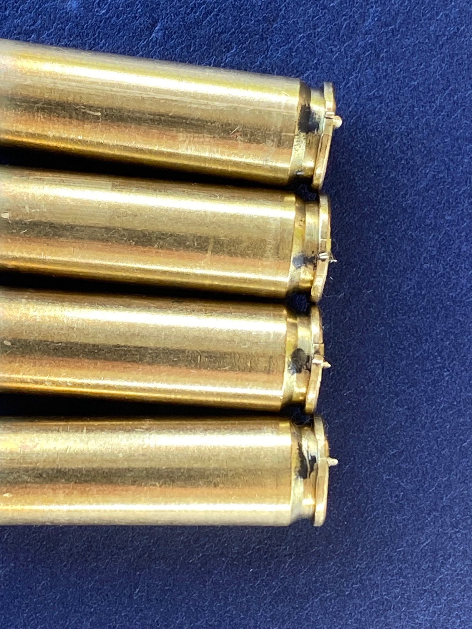 We were getting used to the rifle's performance at various distances, had shot about 400 rds through it, when we noticed a primer fell out of a fired case. The next few times it started happening more often, and the ejected cases started looking worse. That's when I started to try different factory loads as described above.