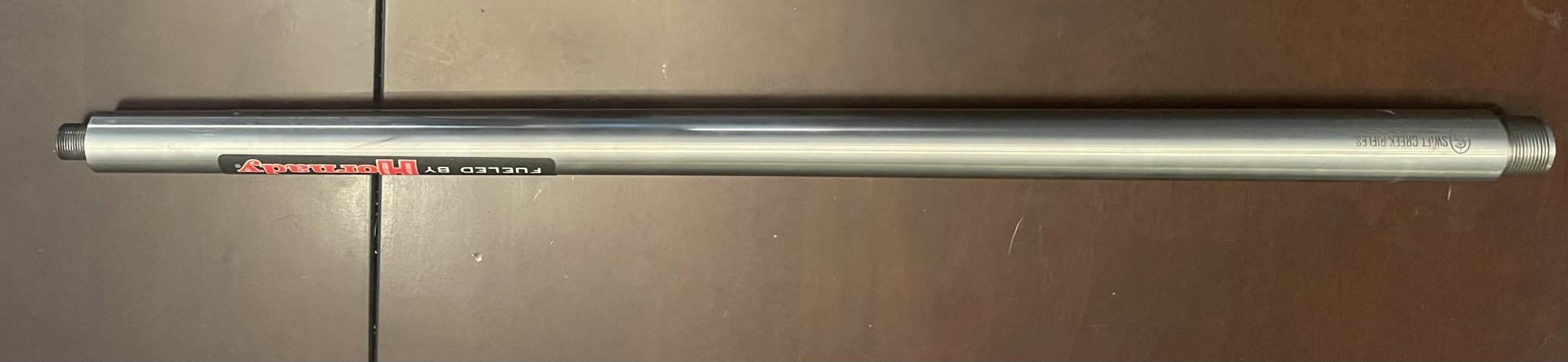 This barrel was originally chambered for a 6x47 and the buyer backed out I bought this barrel new unforced and it was shortened an inch on Breech end and re chambered to 6GT. The rechambering was done by swiftcreek rifles as well. This barrel headspace’s and shoots perfectly but due to the re chamber it doesn’t line up properly with the swift creek logo the logo isn’t visible it’ll be on the bottom of the barrel. Getting rid of because I just didn’t care for the 6gt factory ammo and I can’t reload right now. And when I do reload it’ll be back to my dasher