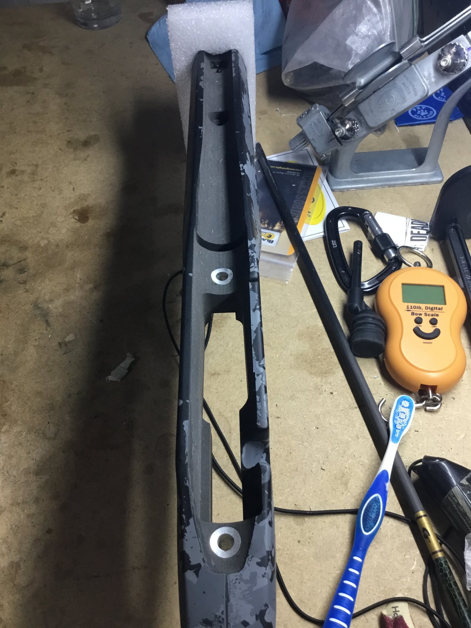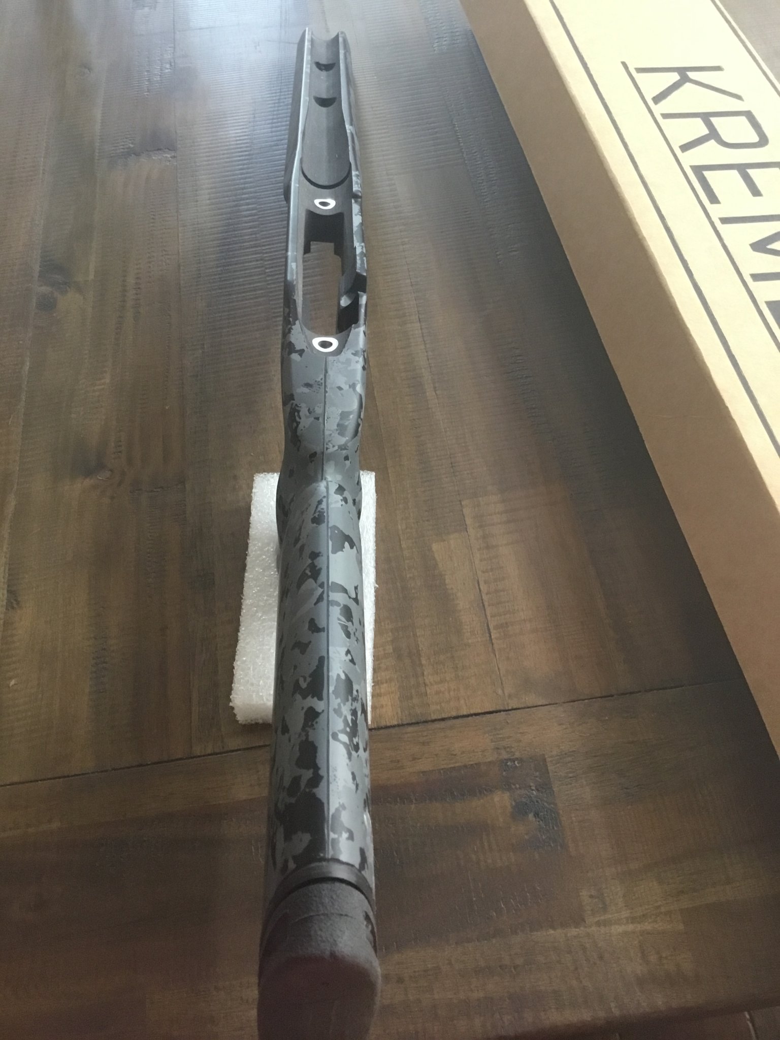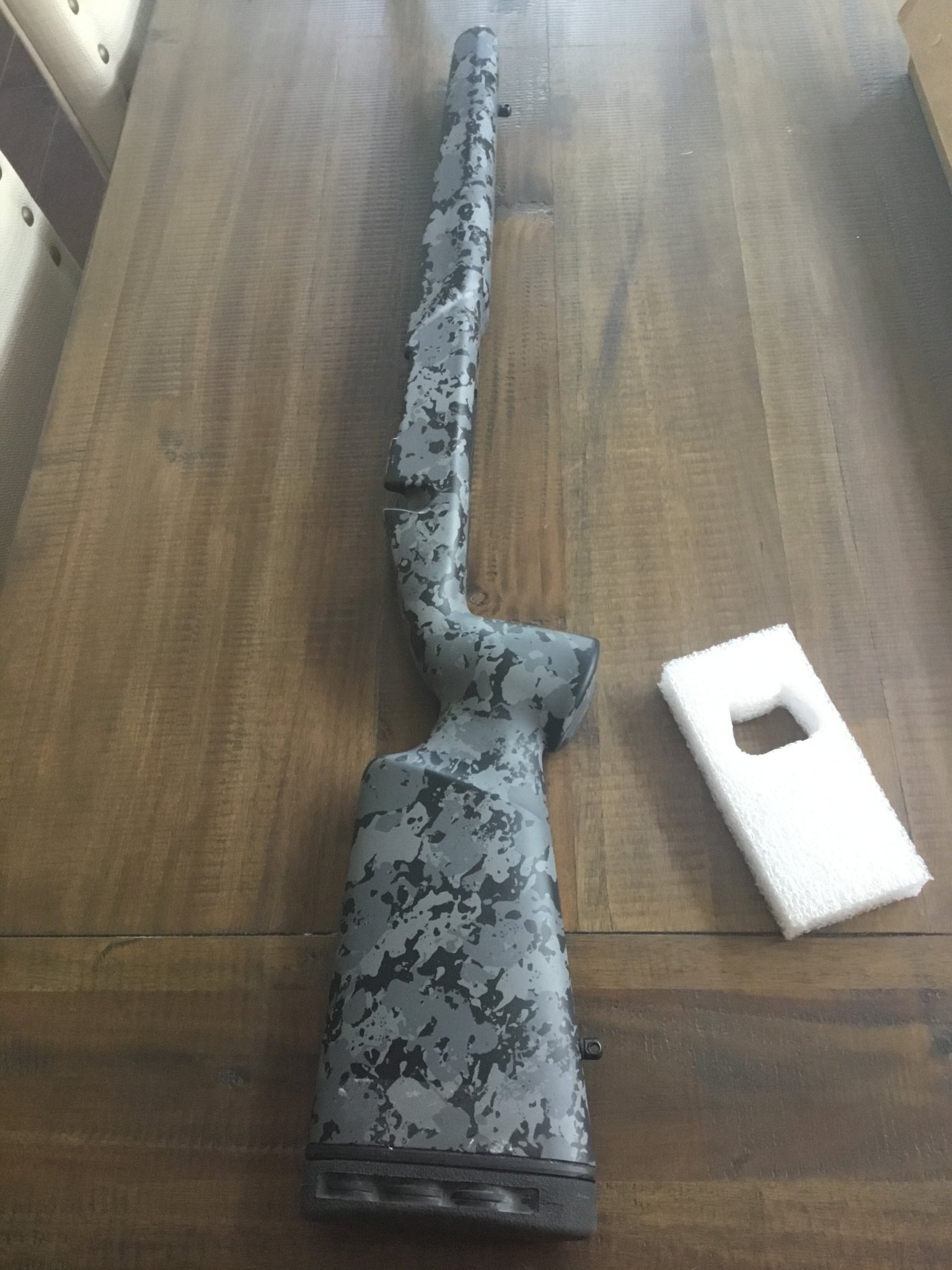 Went with an adjustable cheek piece stock. Brand New. 2.5 lbs. lop 13.5. carbon fiber reinforced composite mold. Machined pillars. Air tech recoil pad. $385 TYD.
