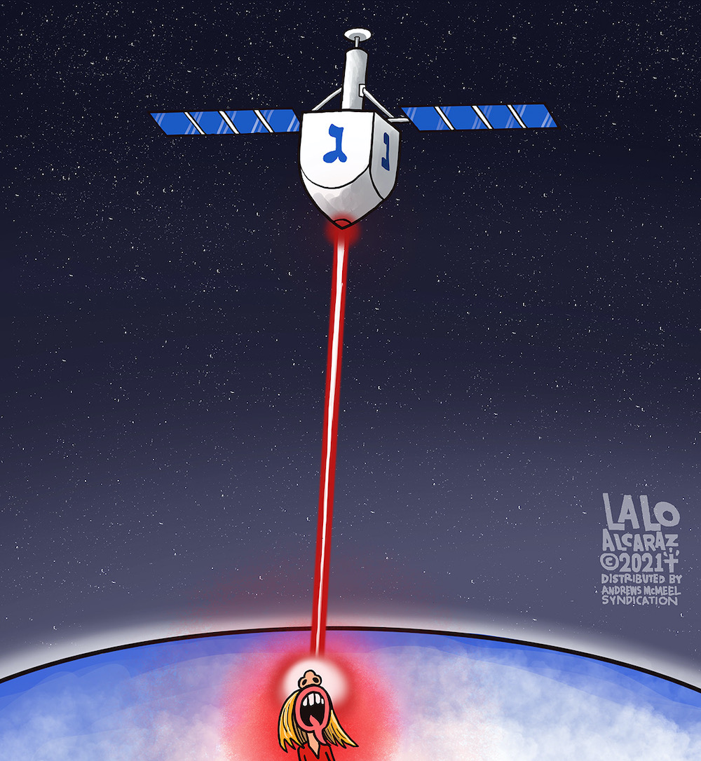 Maybe he actually owns the Jewish Space Laser. Probably bought it at one of those weapons expos in Dubai or something. It probably now fires both lasers and his newest high pressure cartridge, 6.5 Messiah, and is accurate enough to hit the emergency gas line in Iran.