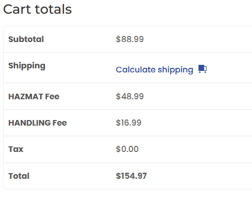 Oh oh contraire (I think)....the last image above was my test cart from Huron for a pint...and they are charging $48.99 Hazmat.