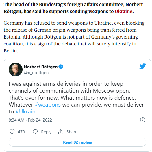 Looks like the start of WW3.Germany will now supply weapons to Ukraine.