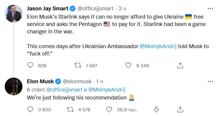 ''In its September letter, SpaceX asked the Pentagon to pay for additional Starlink terminals requested by Ukraine, as well as pay for ongoing service costs. It estimates that these could amount to $124 million between now and the end of the year, and almost $380 million for a full 12 months. Musk previously said the operation has already cost SpaceX $80 million.''