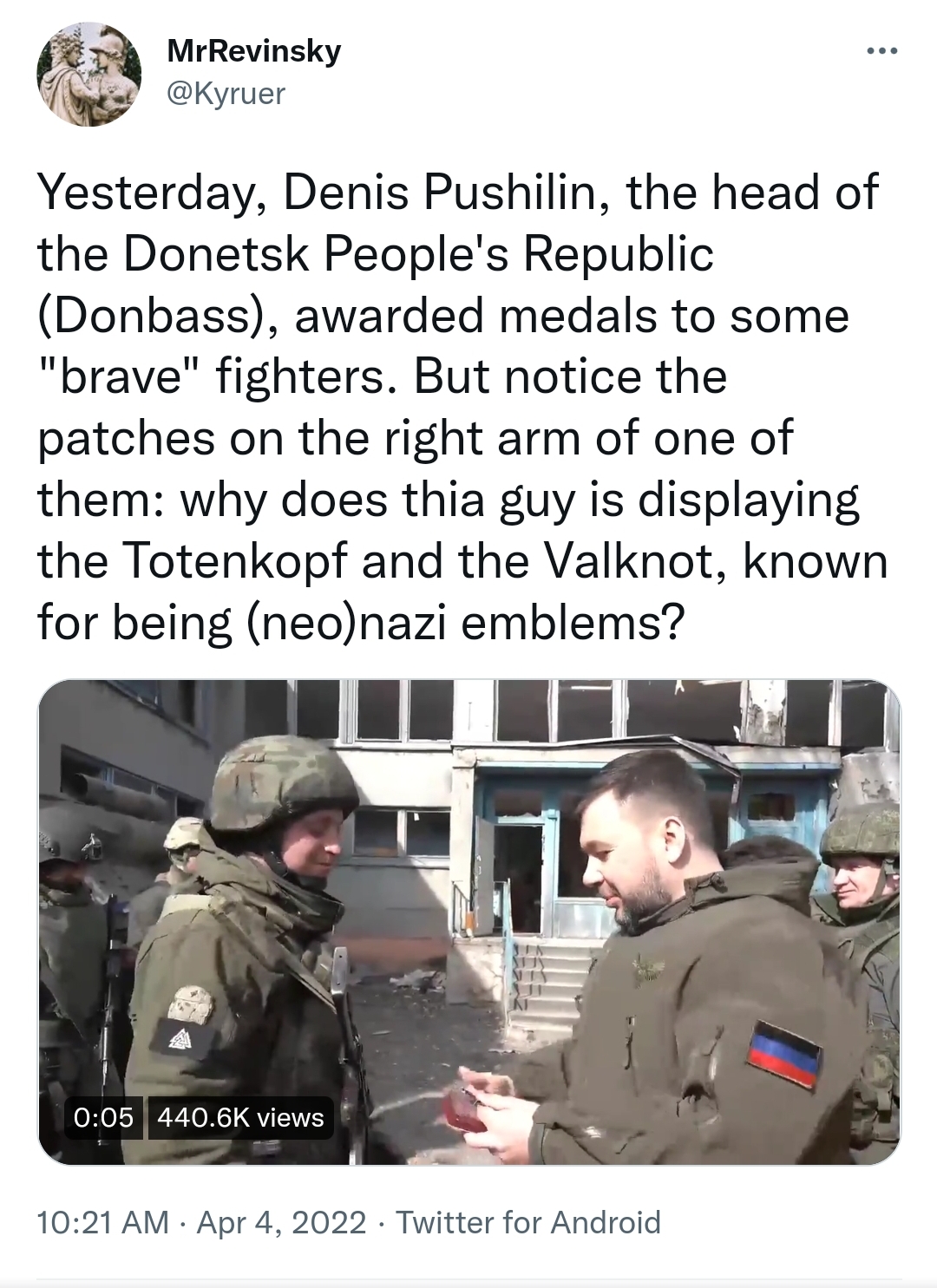 Also Russia: We hand out medals to russian neo-nazis who murder civilians.