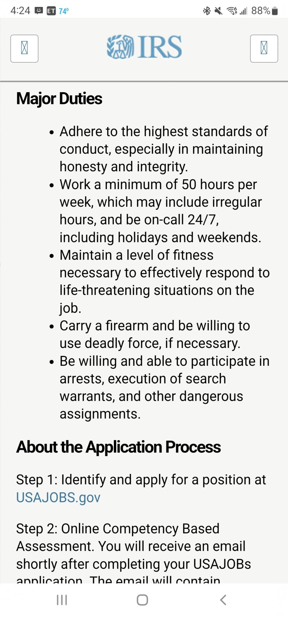 You decide, but I'll let them speak. This posting for a Special Agent role was taken down, but I managed to snap a screenshot of the role's "Major Duties." Not paying your taxes definitely warrants the use of "deadly force," don't you agree?