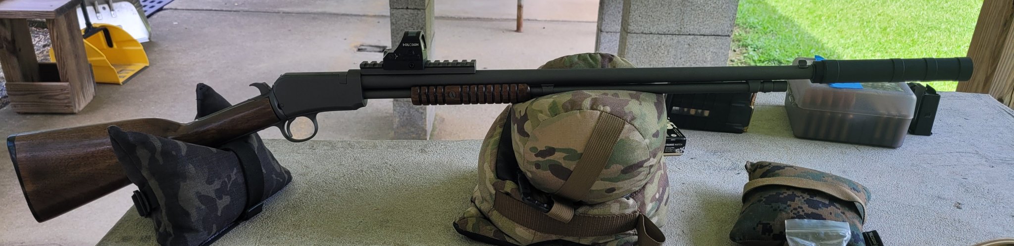 Sorry about the pics taking so long. I got distracted and forgot. Here ya go. I can't make the red dot work here though. Now I'm going to have to get a little scope....