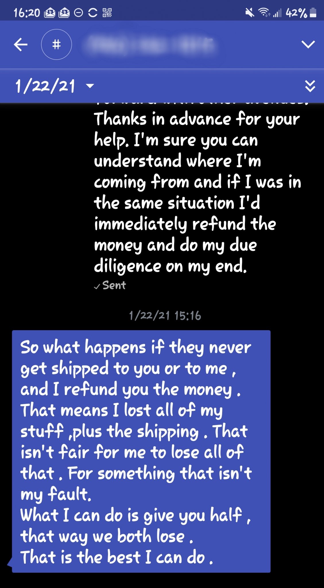 I'm trying my best to wrap my head around this logic as, if the tables were turned I'd immediately refund the payment with a huge apology to boot. Mind you I would not use USPS, I'd have pictures of the items shipped and pkg, and make sure the item was thoroughly sealed and secured and Fully insured.