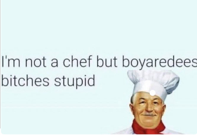 I drove my son and his buddies 4 1/2 hrs north to hike and camp . So I ask them what'd ya pack to eat . Over half of it was Chef Boyardee . So I responded with Chef YoAmBeeeee . Come back to pick them up and every other statement is " Chef YO AM BEE!! .I couldn't agree more. Perhaps it's my fine, triple-milled Italian shave soap, but the homos are coming out of the woodwork wanting to fight when I refuse to respond to their PMs asking for dick pics.