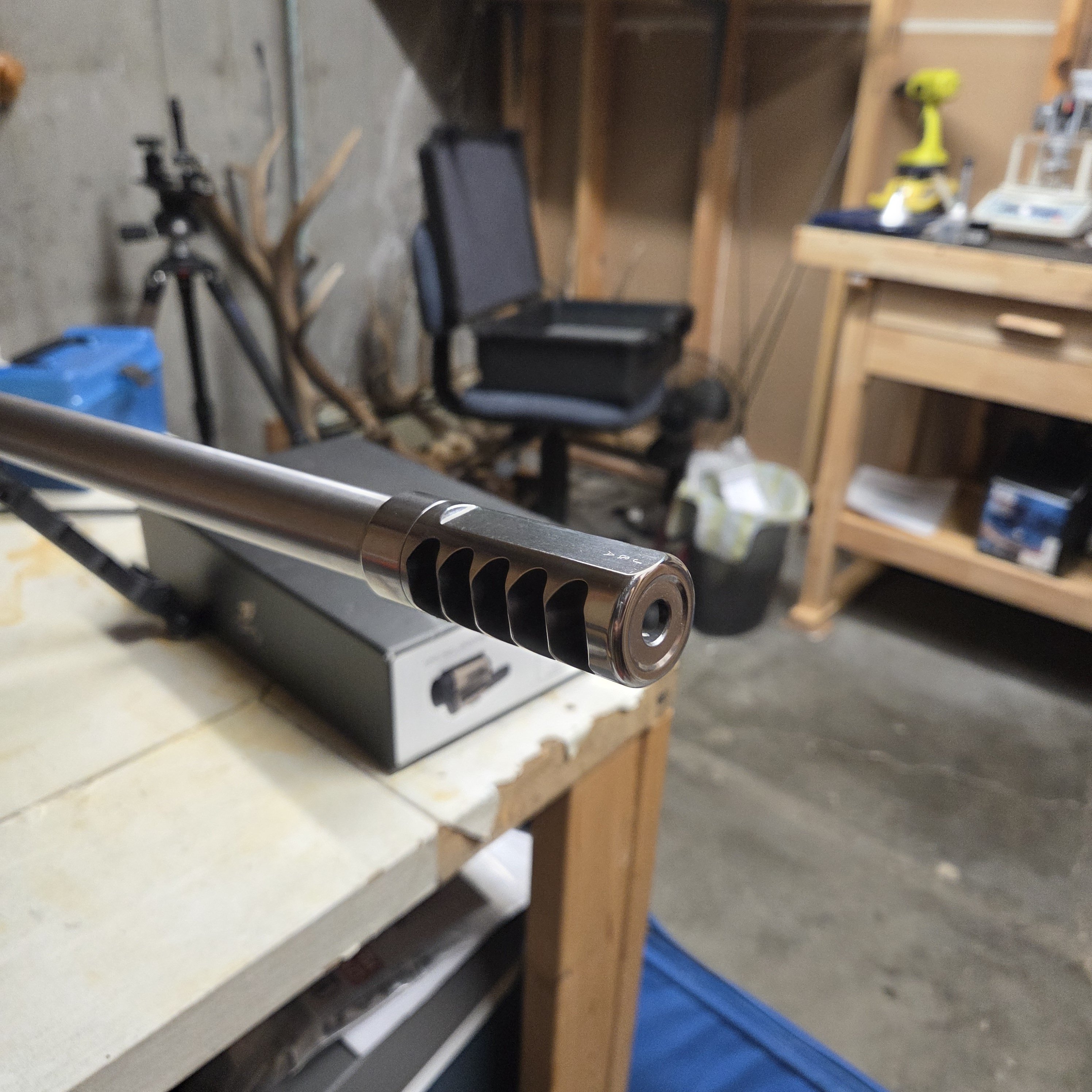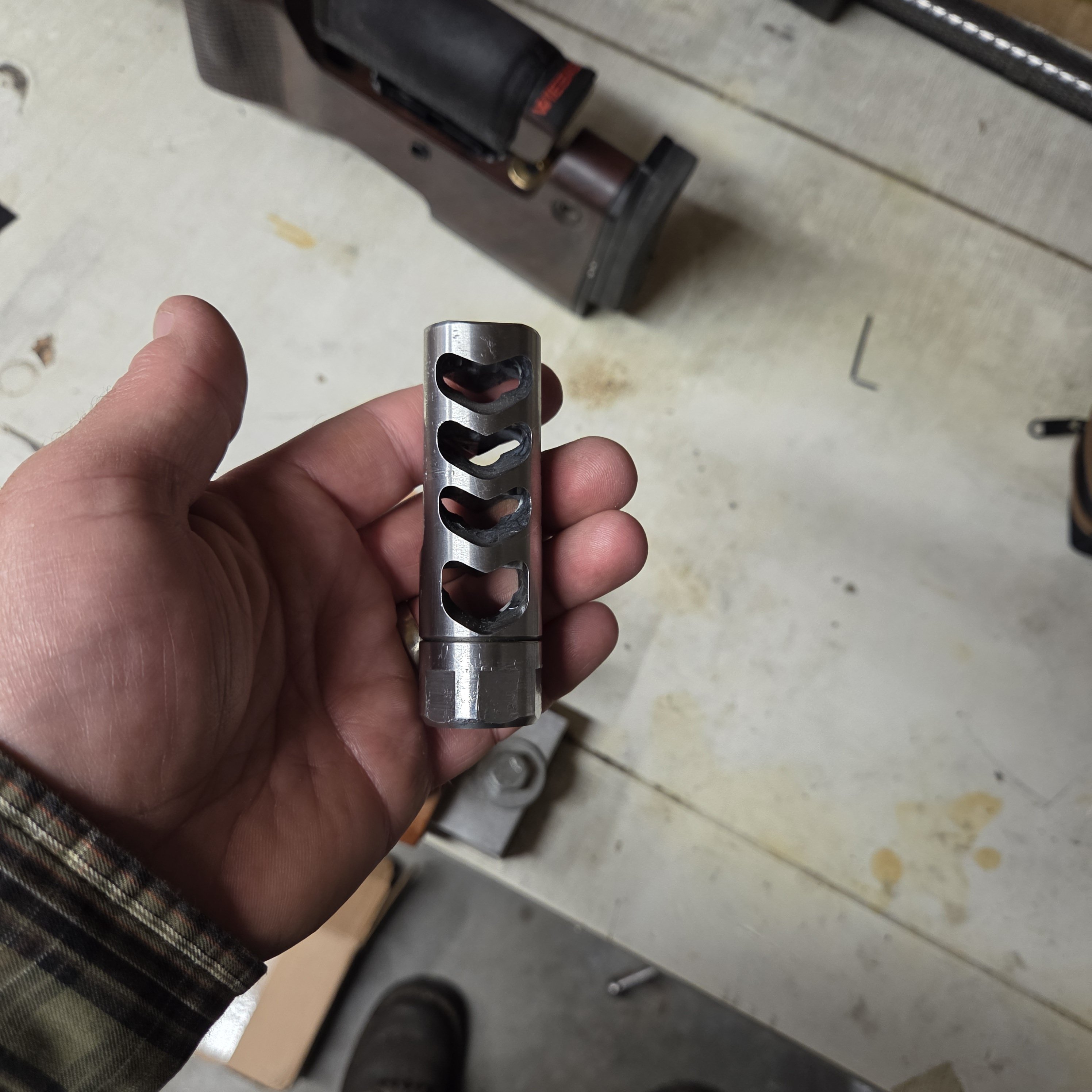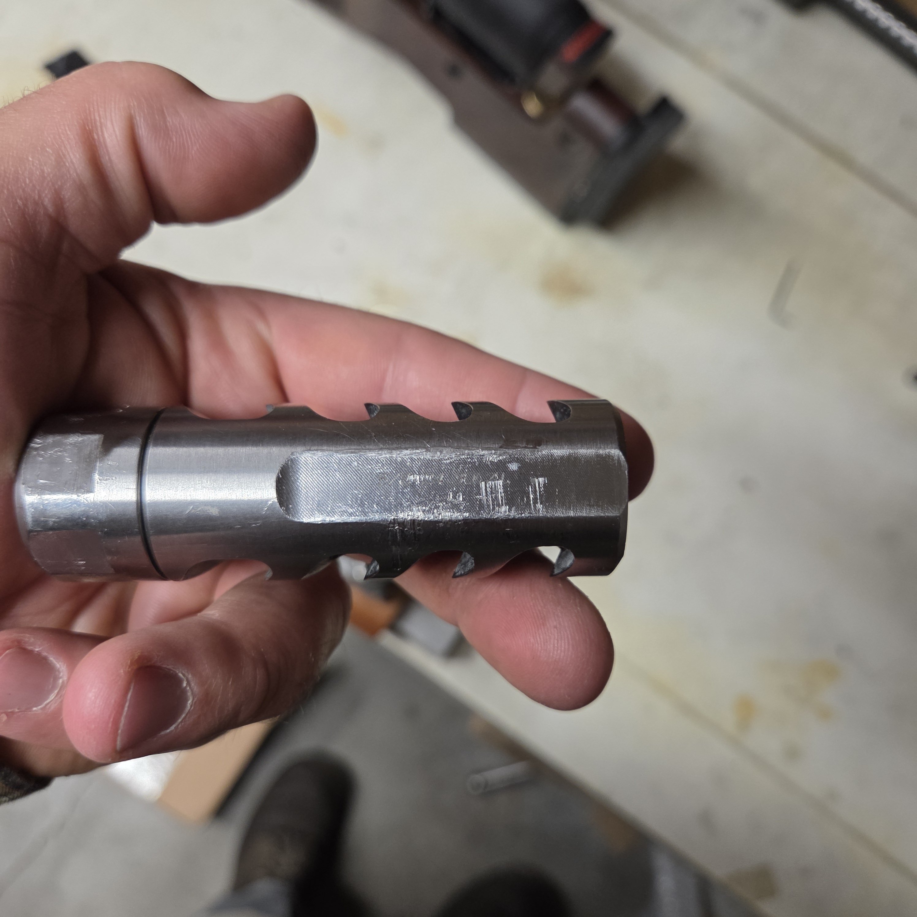 This is made by JA outdoors and Justin from kinport peak rifles helped design this brake. It's a 5 port stainless steel brake with 5/8-24 threads comes with 338 cal.
