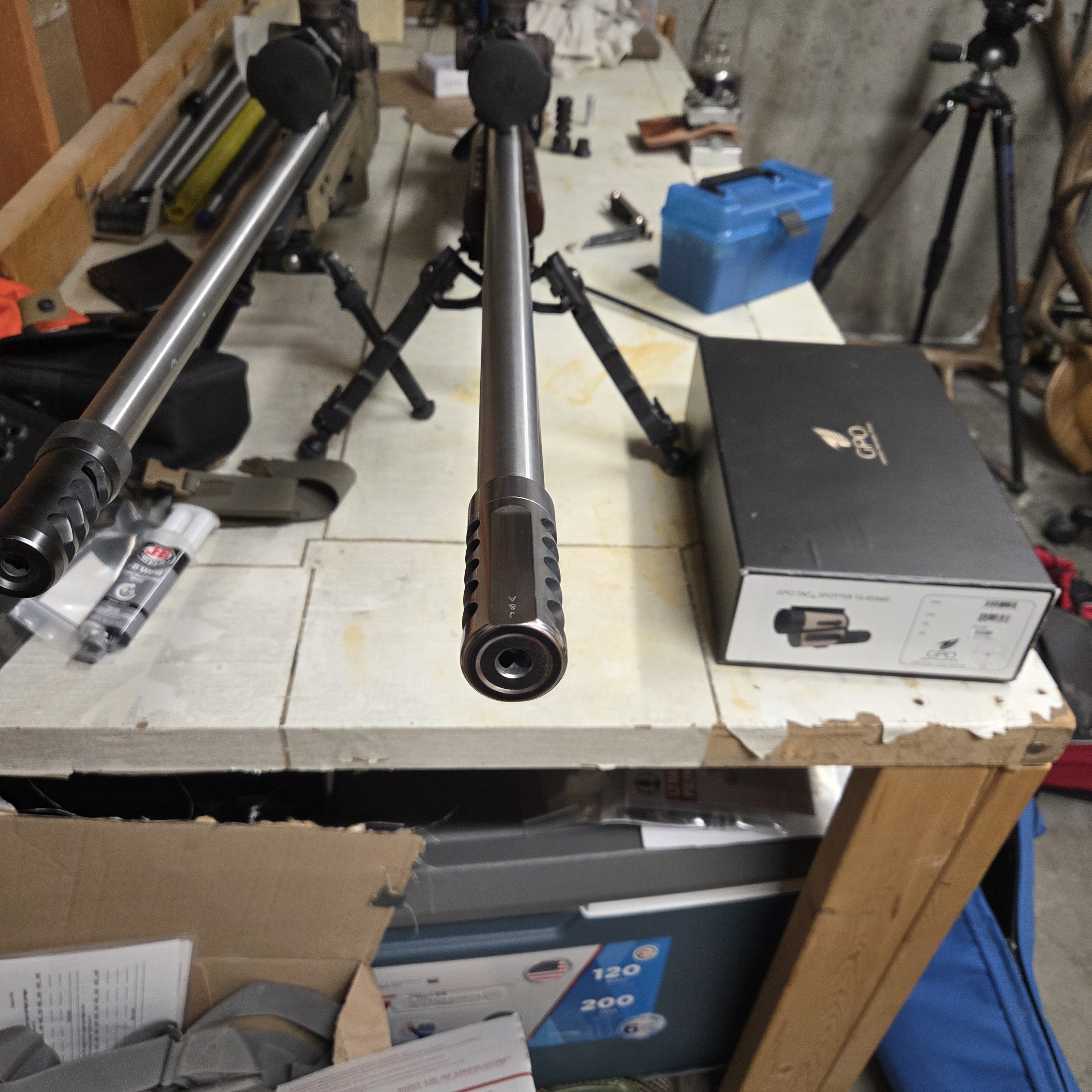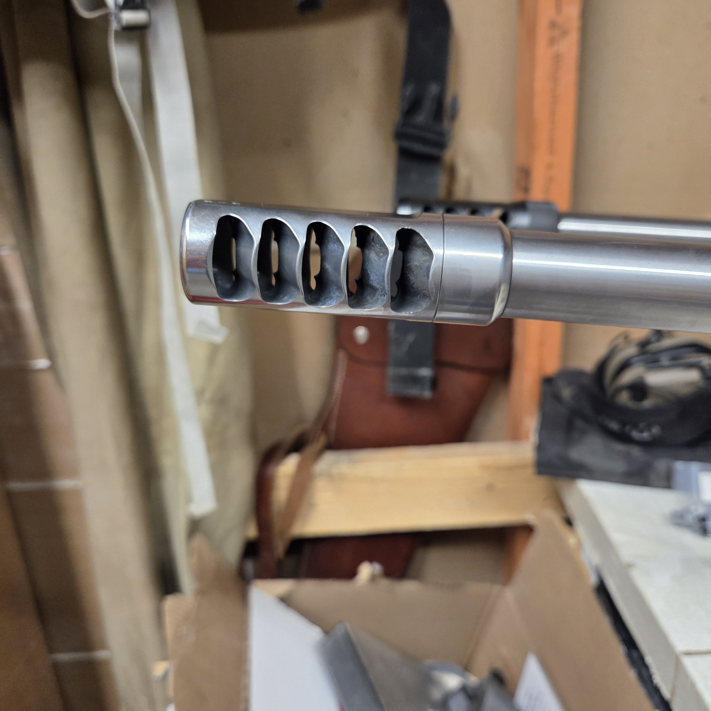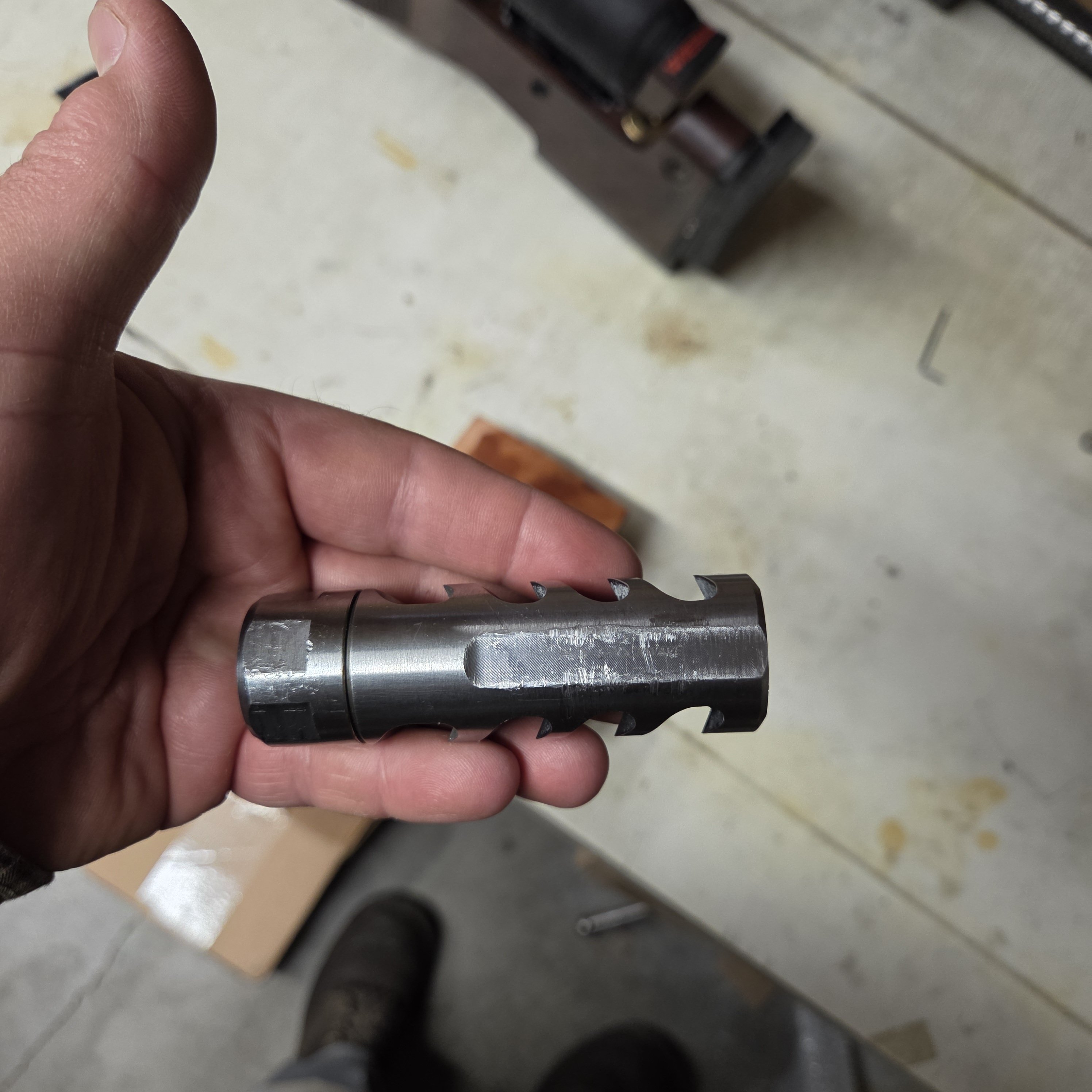 This is made by JA outdoors and Justin from kinport peak rifles helped design this brake. It's a 5 port stainless steel brake with 5/8-24 threads comes with 338 cal.
