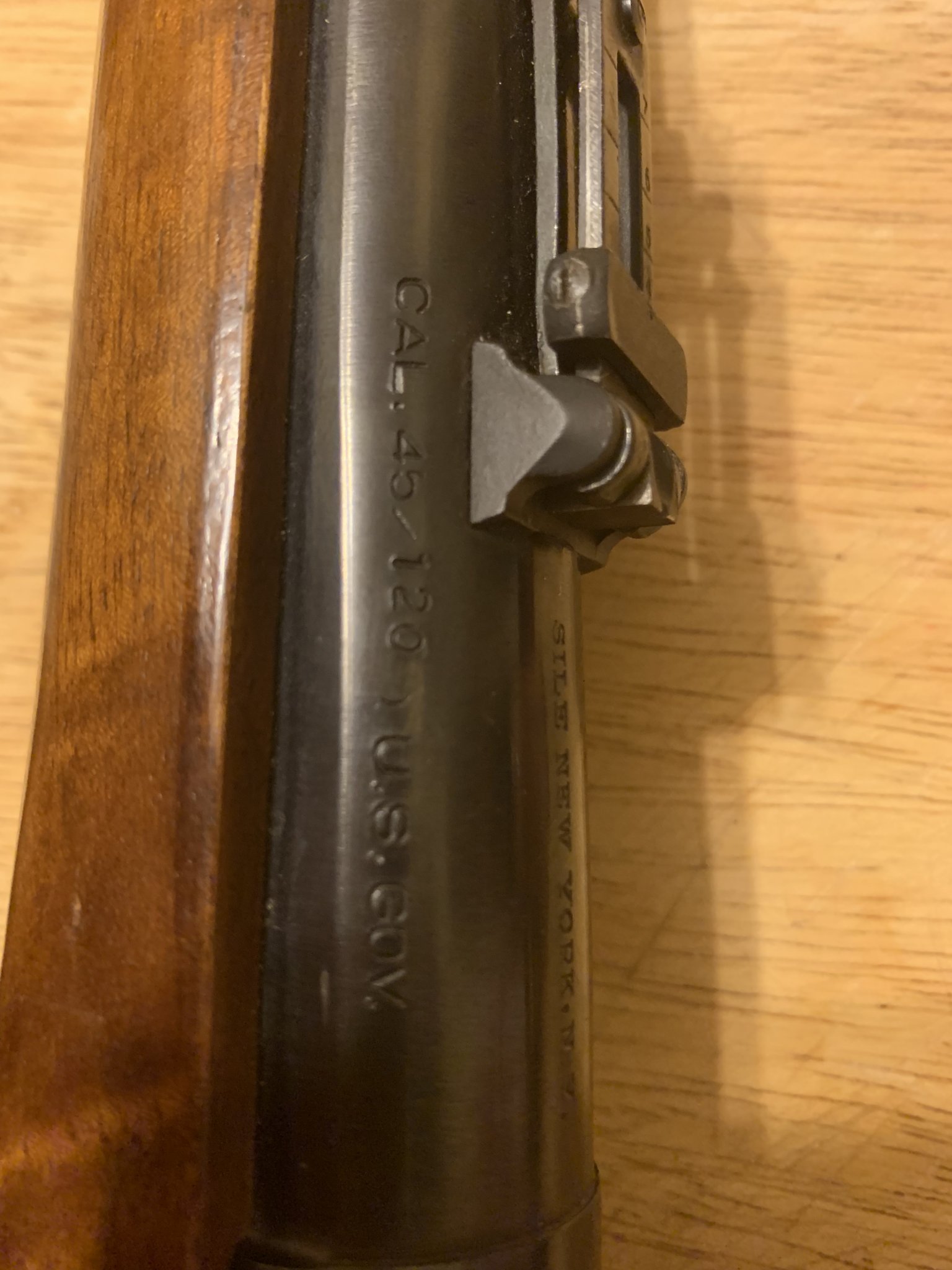 The other is a IAB Sharps chambered in 45/120 its has the fold up sight that is adjustable. The barrel is a 22".