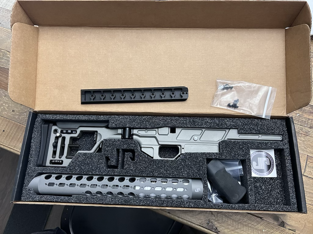 Used but it's in great condition. Bolt channel was modified to create clearance for Impact action bolt handle (see pics below).