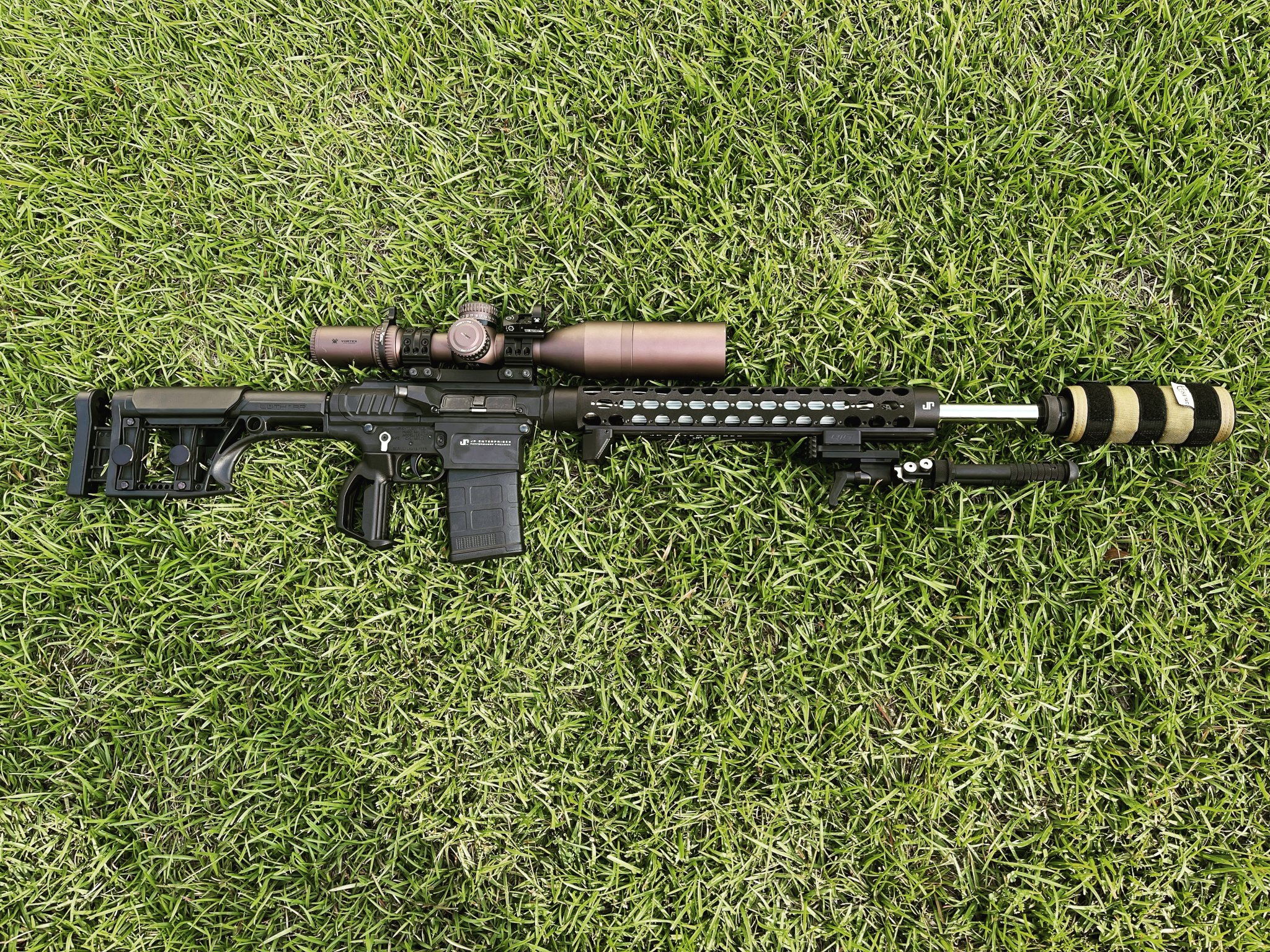 The rifle is a JP LRI-20 with the 22” JP supermatch barrel, VMOS BCG in its heaviest config with tungsten weights, SCS also heaviest with tungsten weights and a superlative arms gas block, I went with this setup Bc the rifle is ran suppressed full time and so far it’s been EXTREMELY easy on brass, feeds and ejects like a dream with very little recoil.