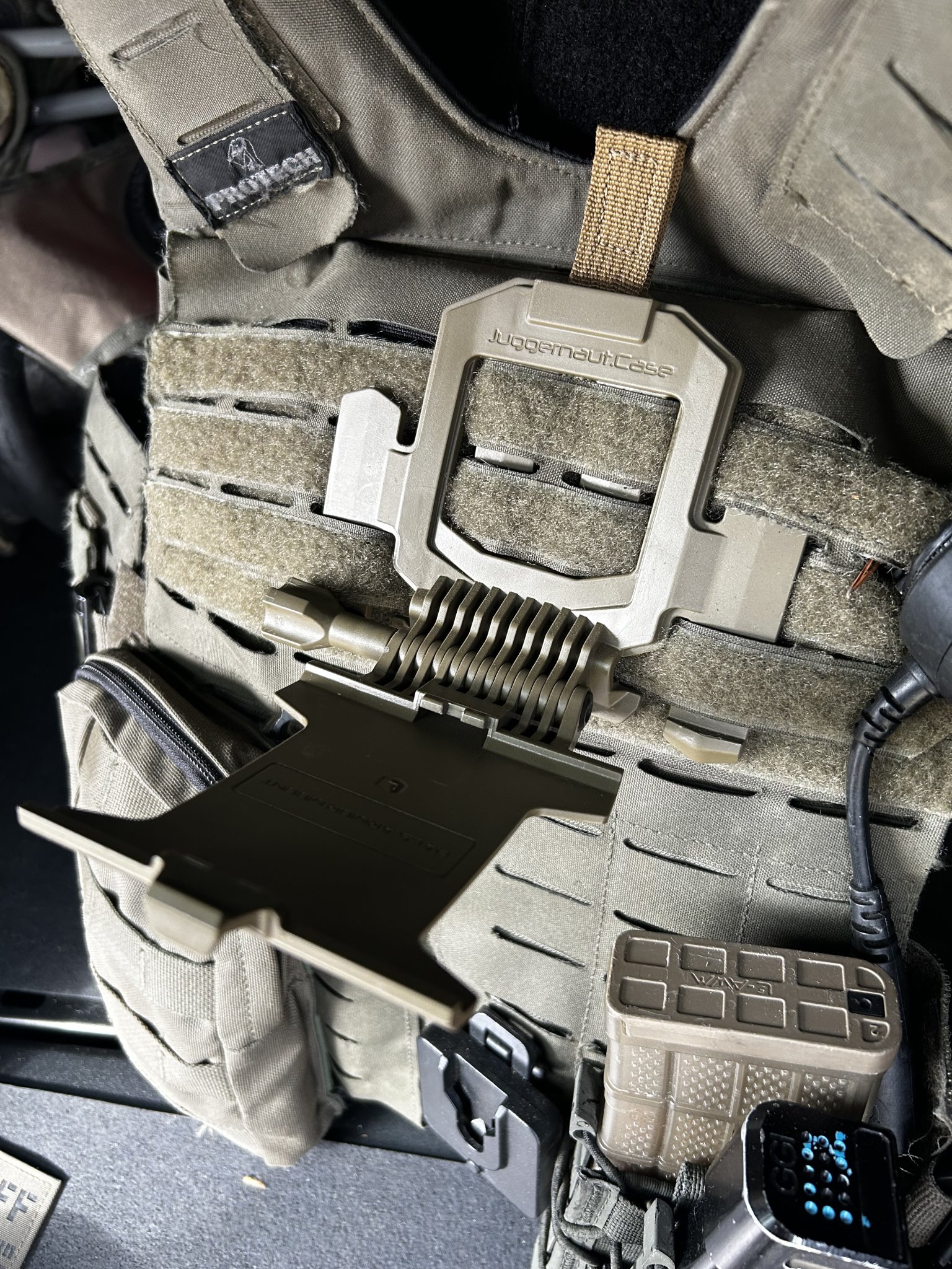 Selling a L size Juggernaut phone ENDVR chest mount. Attached is to the molle webbing on any vest or plate carrier. Price is shipped CONUS