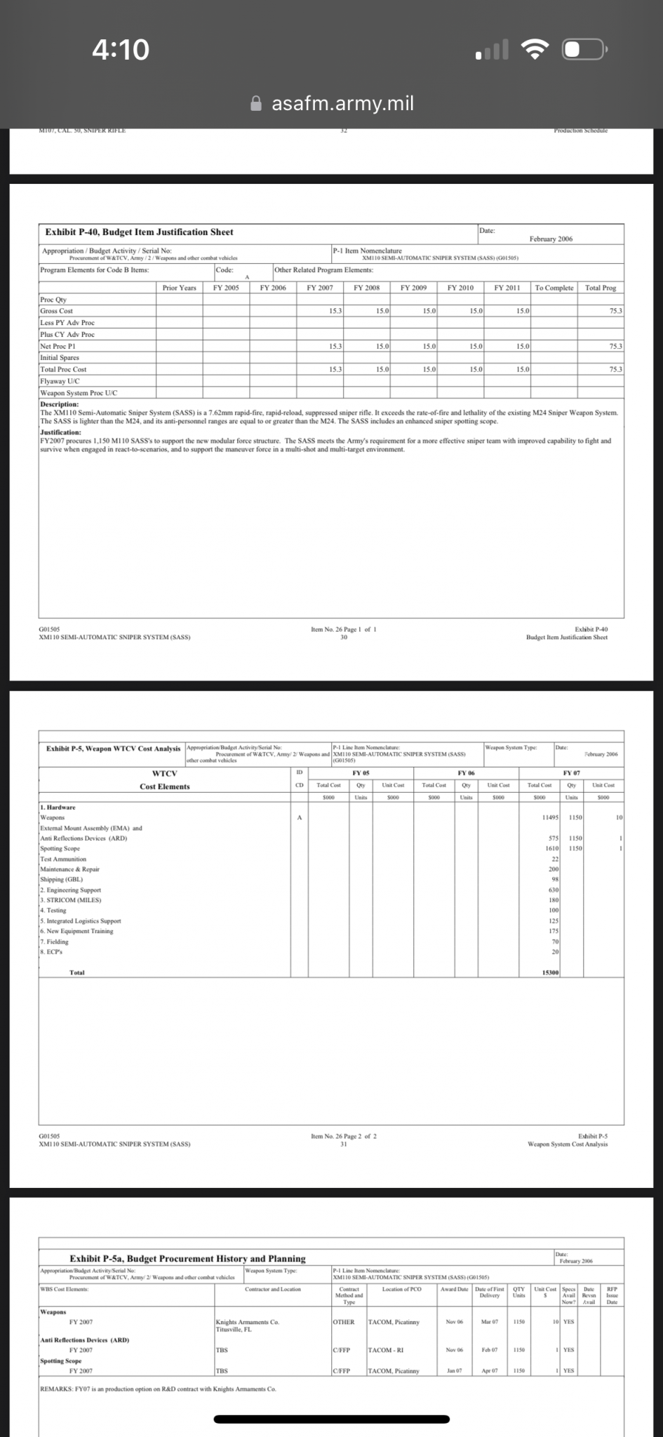 @redneckbmxer24 Those figures on that sheet are in $1000 increments hence the 3 0's on top of the column. I looked at the M4 section and those numbers align with what we paid for the whole kits when I was a 1SG at Bragg.