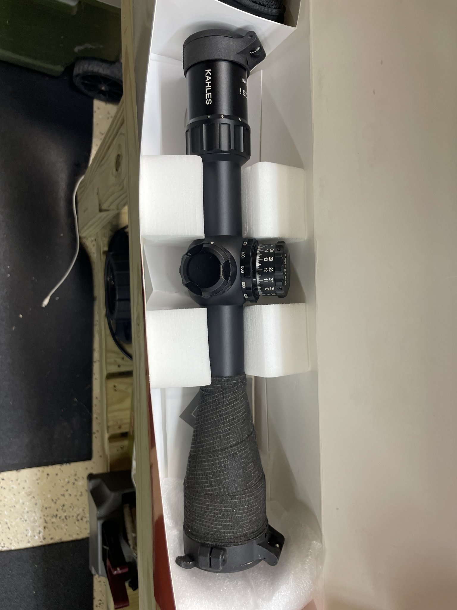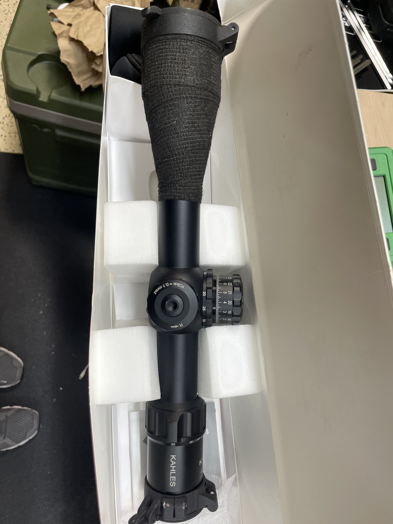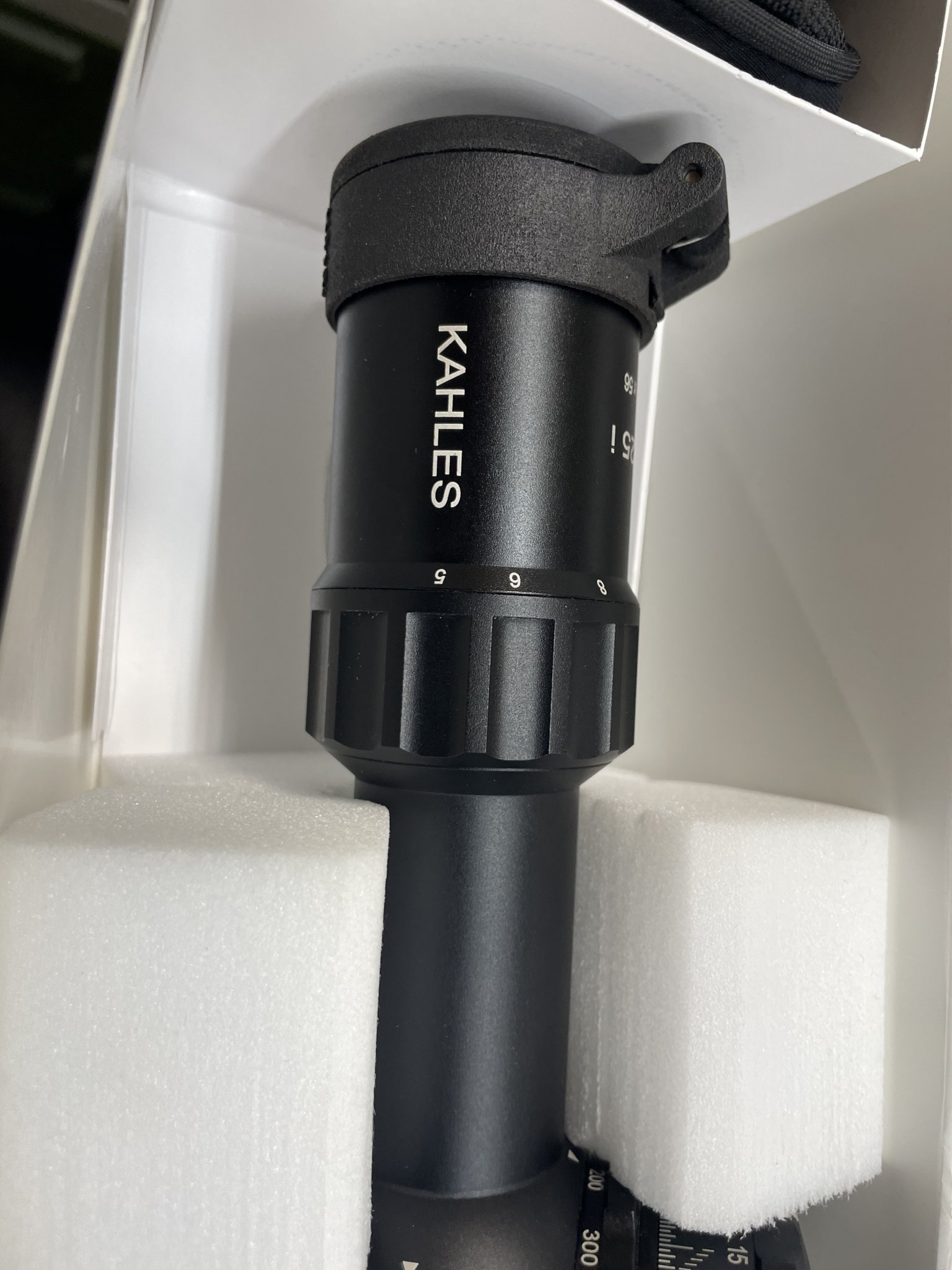 Kahles 525i LSW SKMR3 with vortex match rings (high) and AAD lens covers. In really good shape. Has neoprene cover and all papers in the original box.