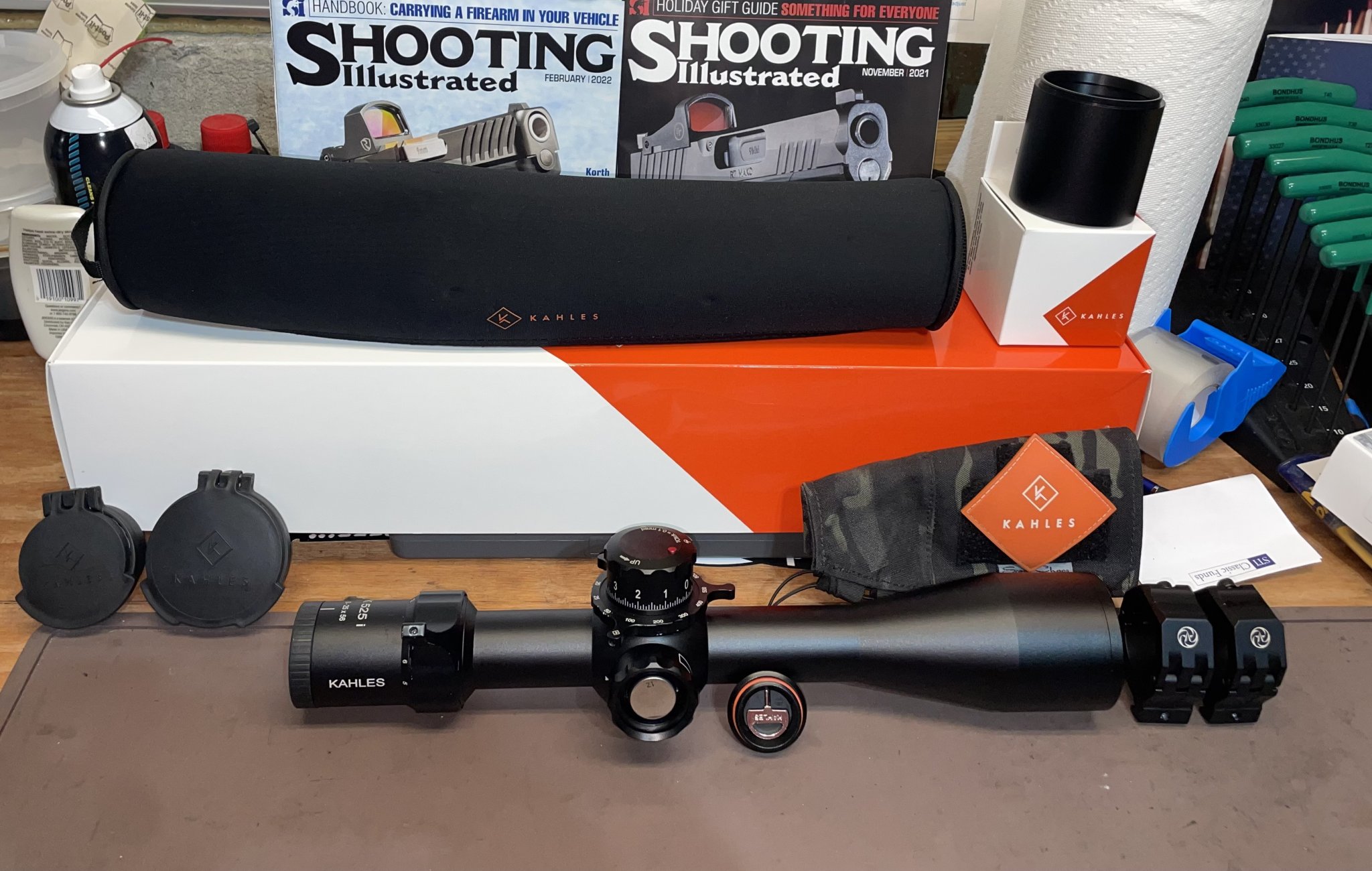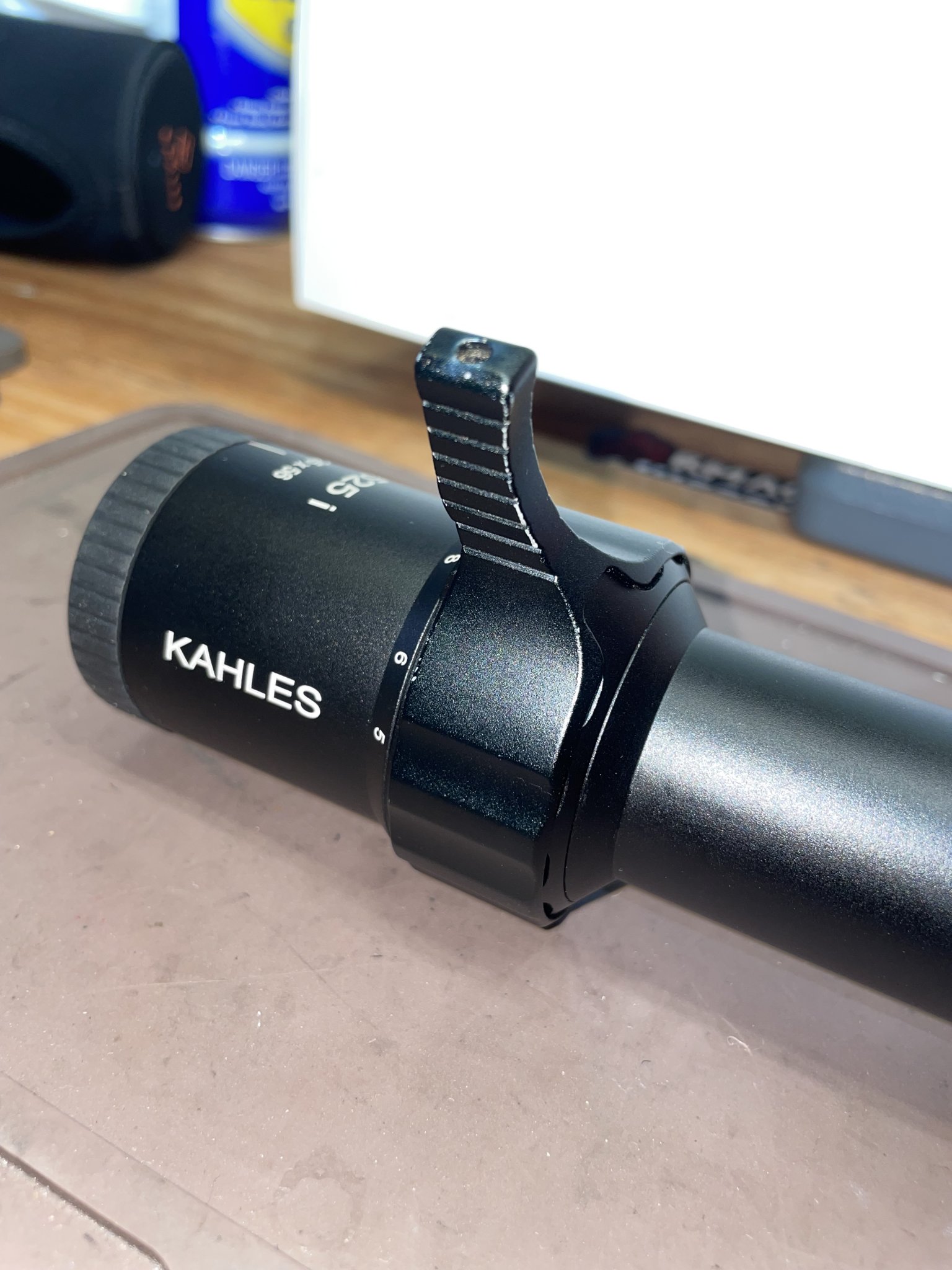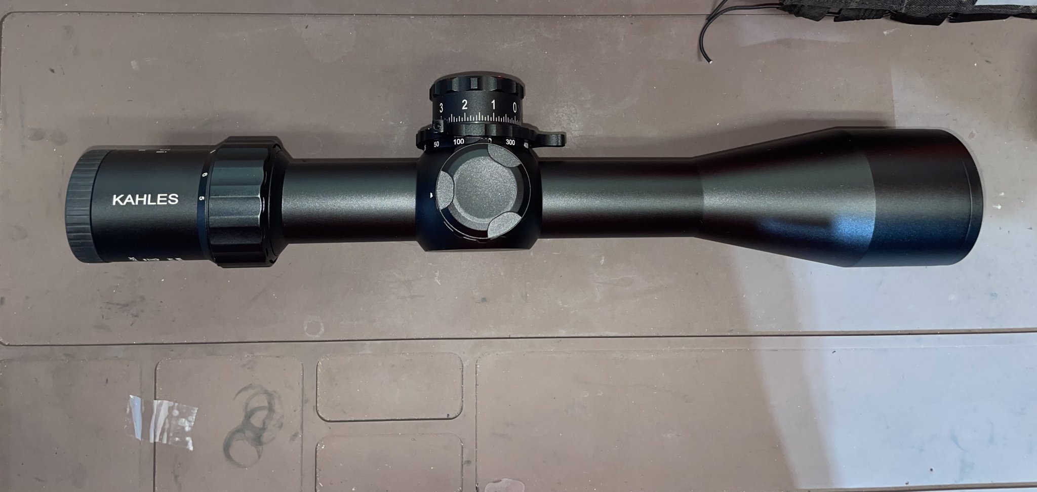 Kahles K525i DLR LSW CCW SKMR4 Left. Purchased this scope new to use on my Vudoo for competitive shooting. I shoot four matches and had to stop because of life changes. Scope has been in my safe. Scope is like new with one scratch on the throw level (See Pic). It comes with original box, Kahles neoprene cover, Kahles Tenebraex caps, sun shade and American Rifle Company M10 34mm rings. Will ship to the lower 48 states. Got original paper work. $2700 Shipped!