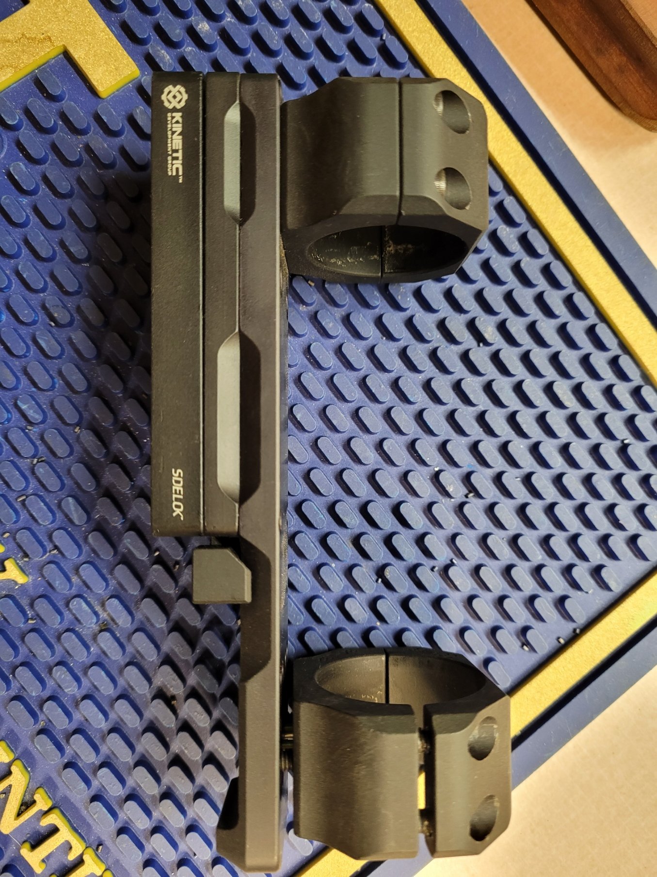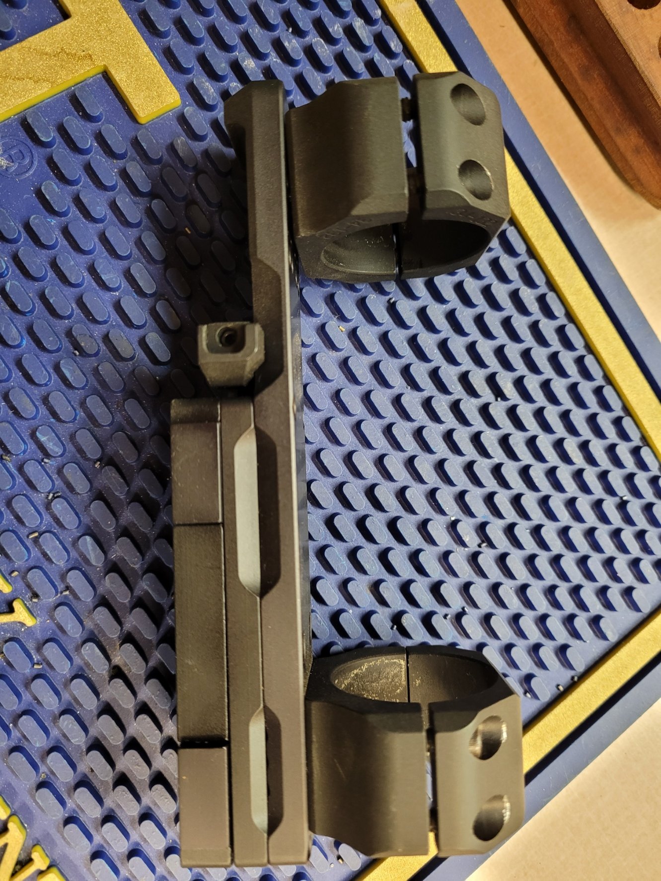 I have two of these mounts and this one is not getting any use right now. These work great if moving optic to multiple platforms or for breaking down rifle for transport. Return to zero is excellent. 0MOA. No damage just normal wear and tear from use. Just not using this one right now and looking to raise some funds for other uses . $175 shipped Paypal F&F, Zelle works for me. kdg.jpgkdg2.jpgkdg3.jpg