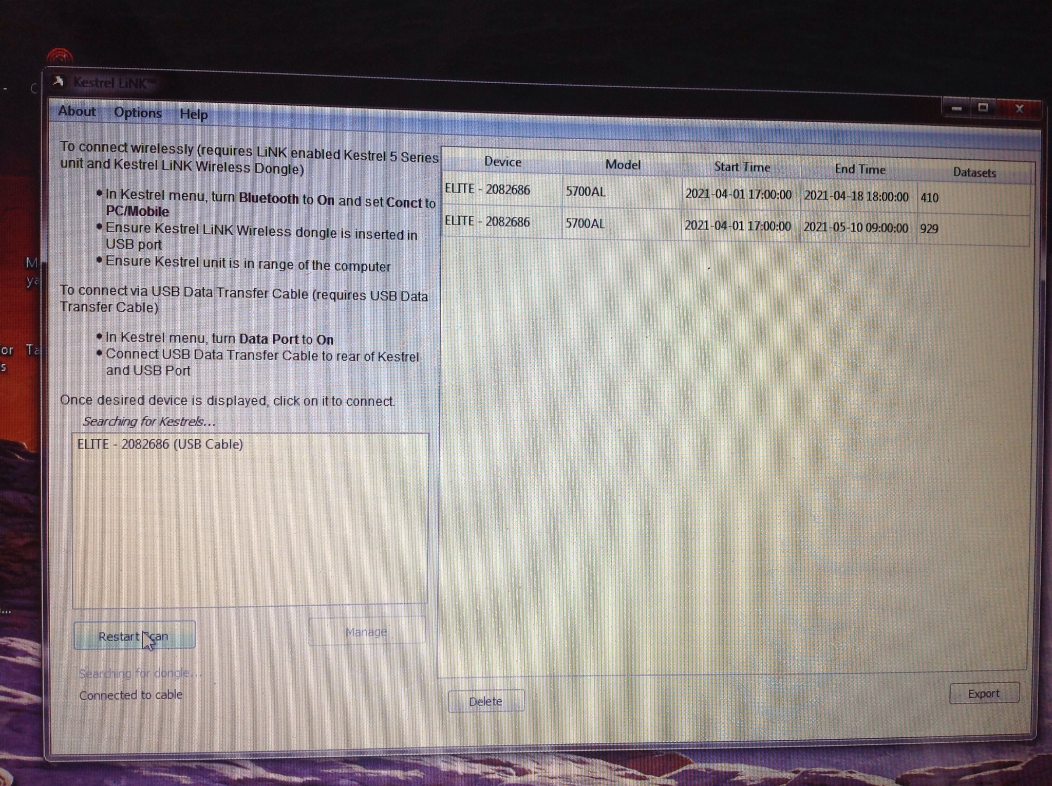- Be patient with having the Kestrel turn off and back on to reconnect to the app.