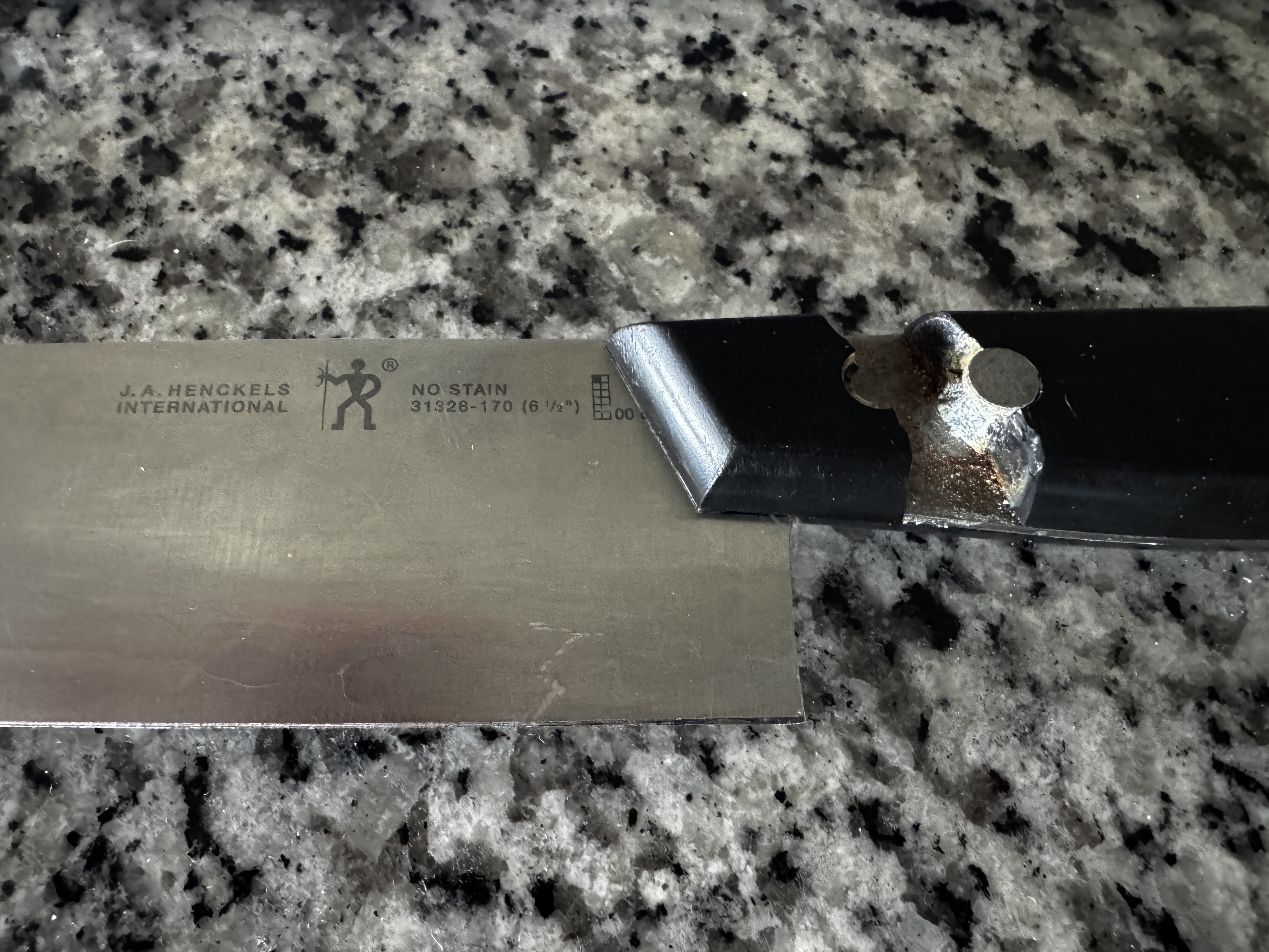Got a 20+ year old JA Henkels santuko knife that the handle has finally cracked and broken off. They wont/cant repair. Still waiting to hear about a replacement knife under warranty. If they wont warranty it it wont hurt my feelings as 20+ years, the knife owe's me nothing.