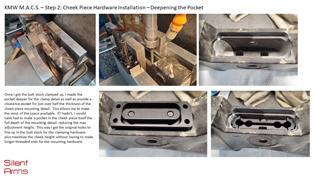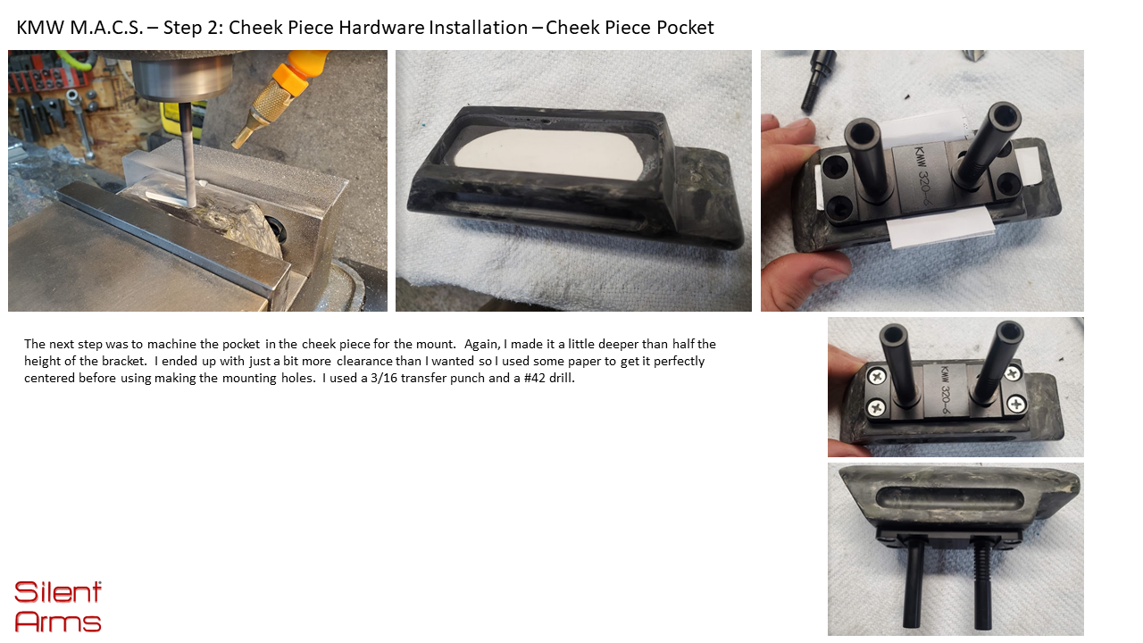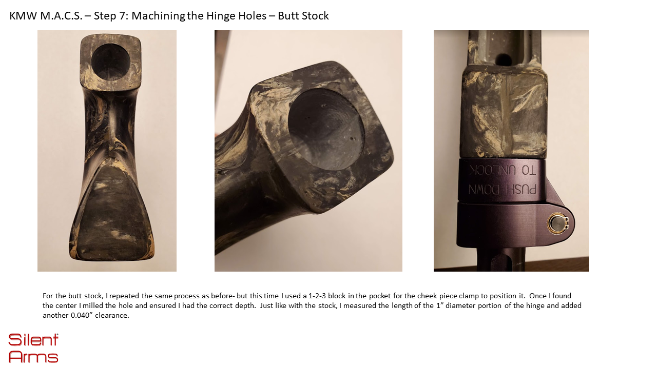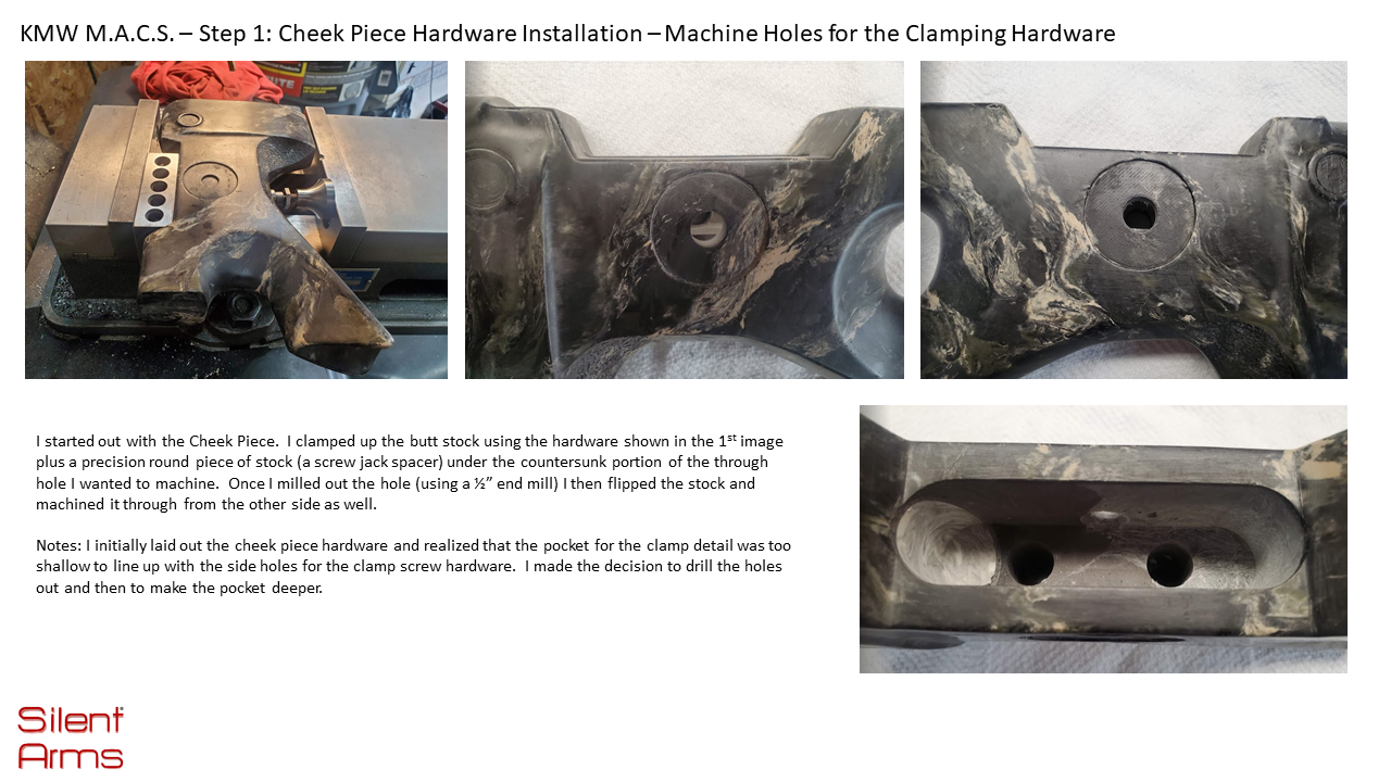 I need to machine the dog bone and drill, drill 1" in folder, and mine is pretty much together. I did go about .020" wide on the Cheek Piece and slightly broke through to the finger groves in it. (Know a guy that can fix it so I'm not too worried).