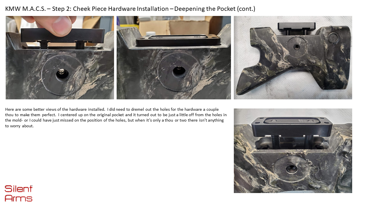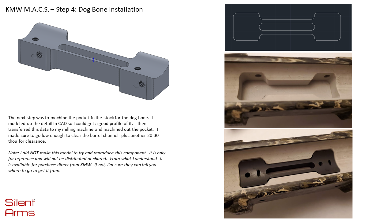 The "Dog Bone" is a small internal mounting block that allows the pic rails to be bomb proof. That will need inlet 1:1 or bedded into place so the side rails fit where they were meant to. Doesn't look too terribly difficult.