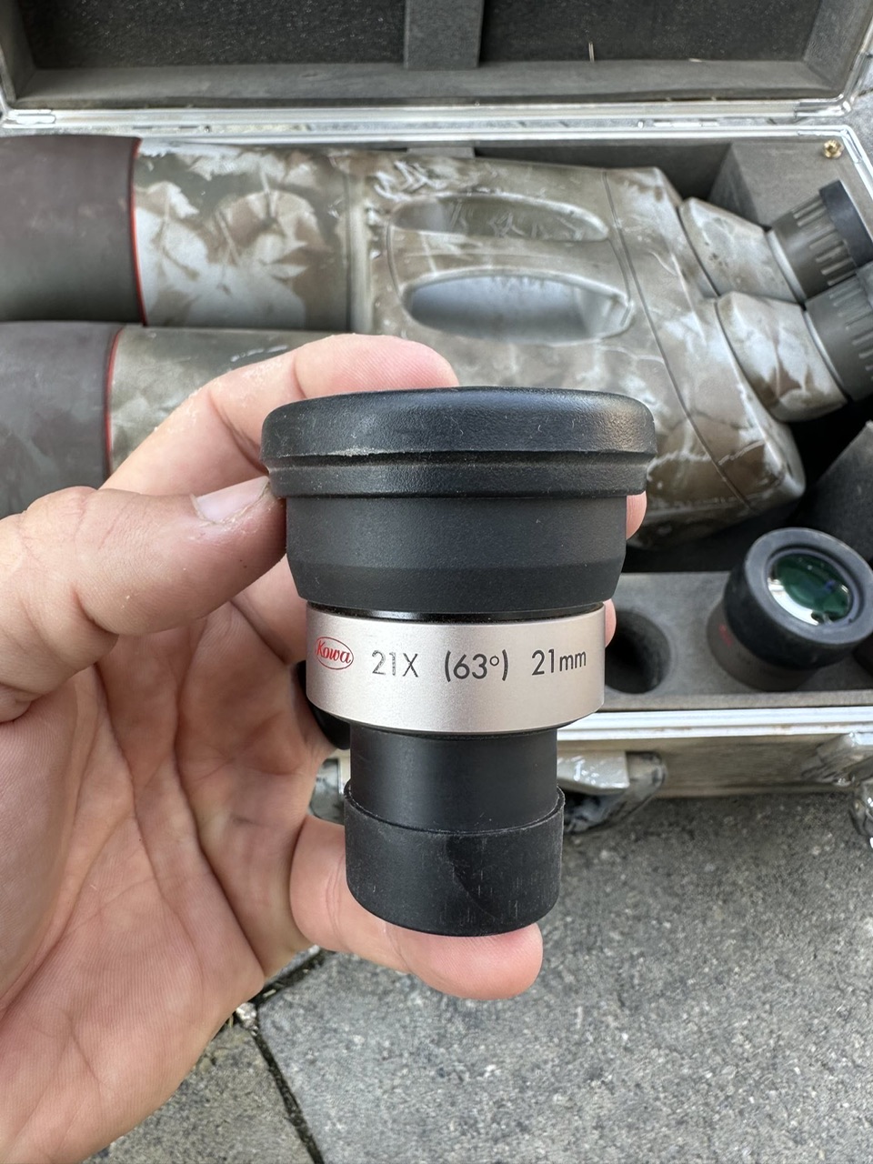 Kowa Highlander 32x82 PROMINAR fluorite binoculars with a set of 21x lenses. Japanese made.