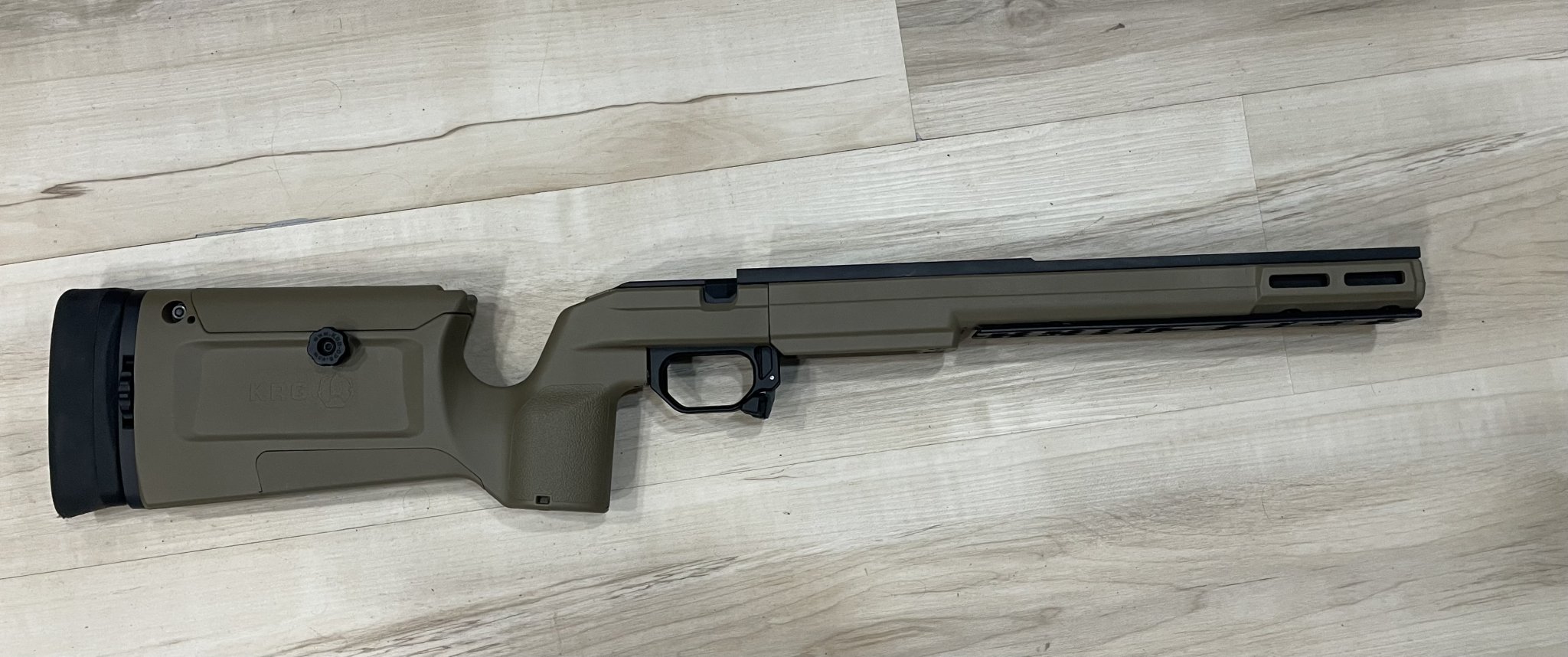KRG Bravo. Rem 700 SA RH Tan with KRG adjustable height butt pad and arca rail.