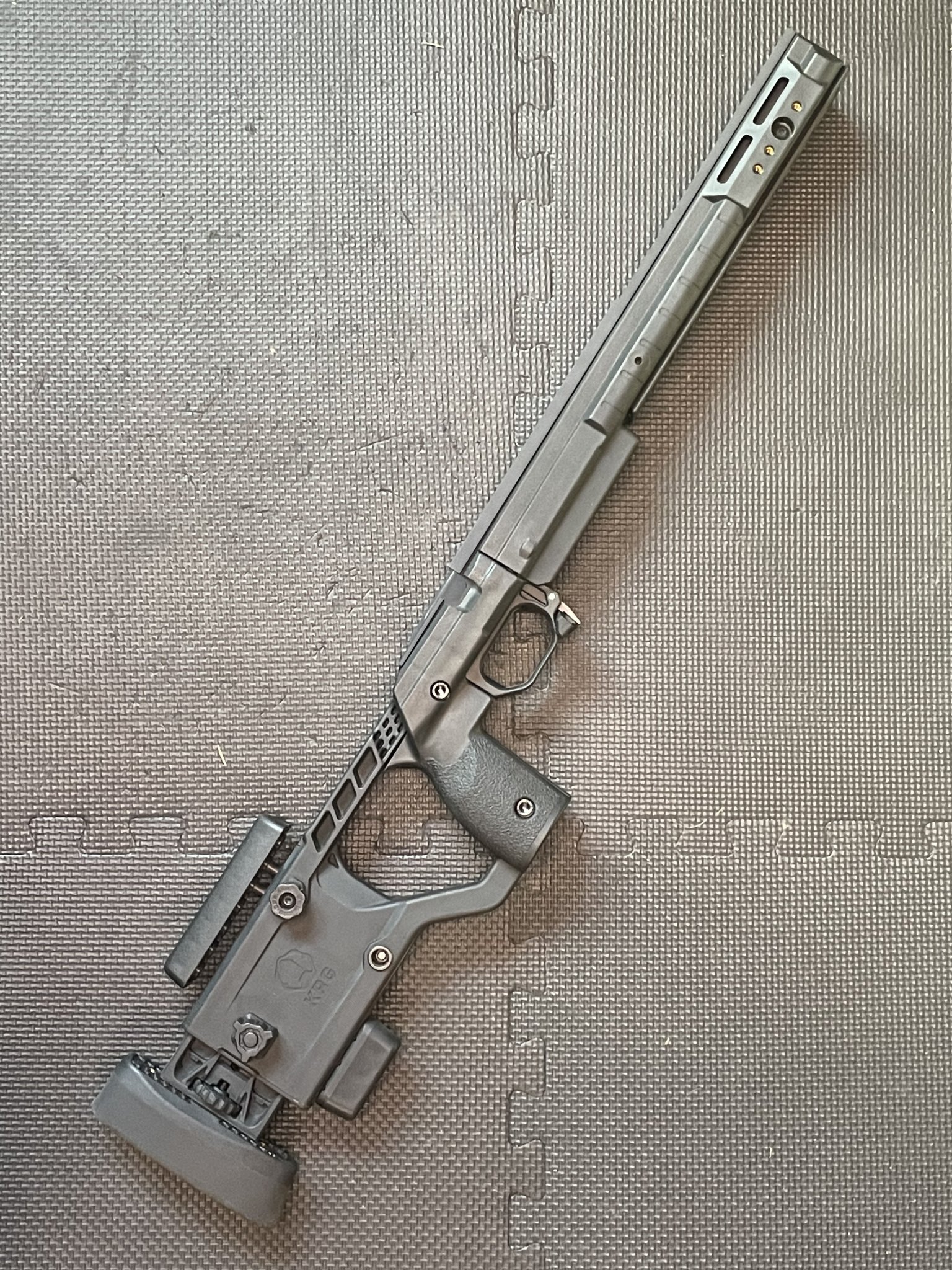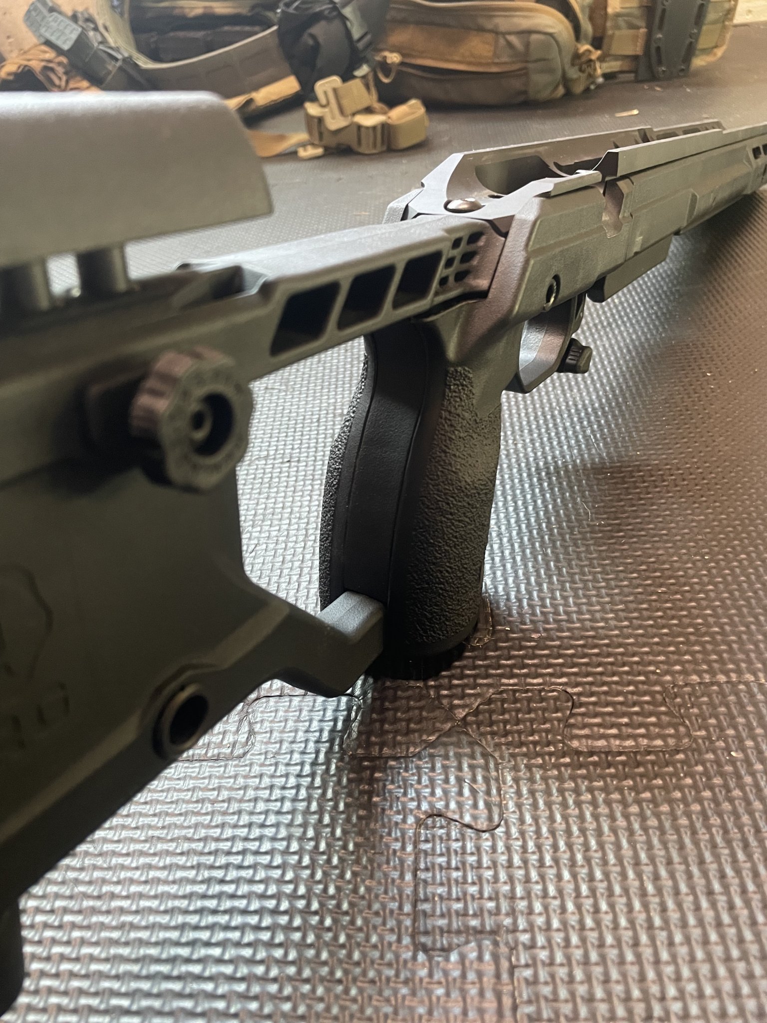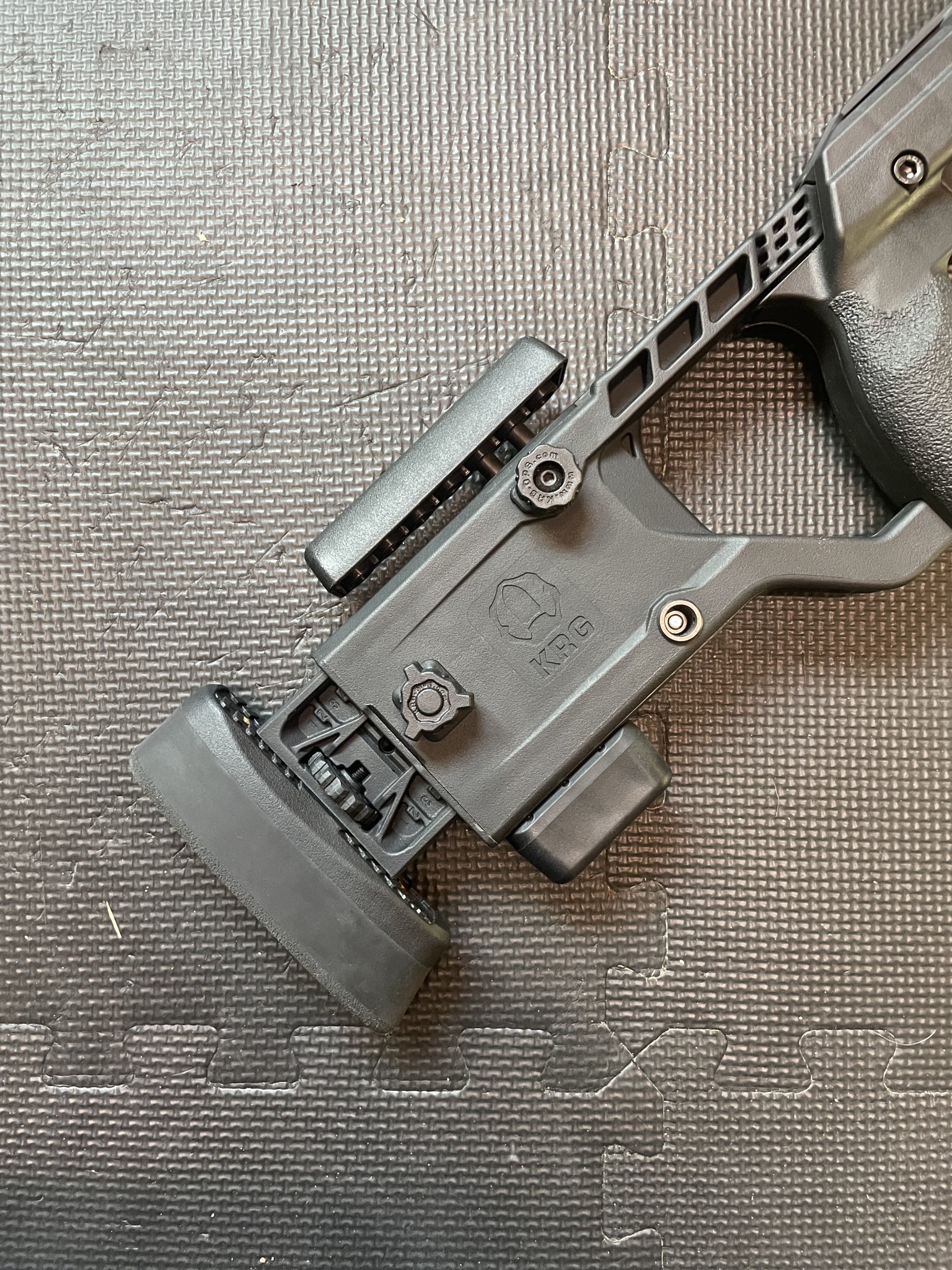 Very lightly used KRG X-Ray for Rem700 pattern actions in black. Comes with Toolless LOP kit, KRG Arca Rail, Large Grip Panels, and Small Bag Rider. Original grip panels, mag spacer, and small rail section also included along with box. Asking $550 shipped OBO.