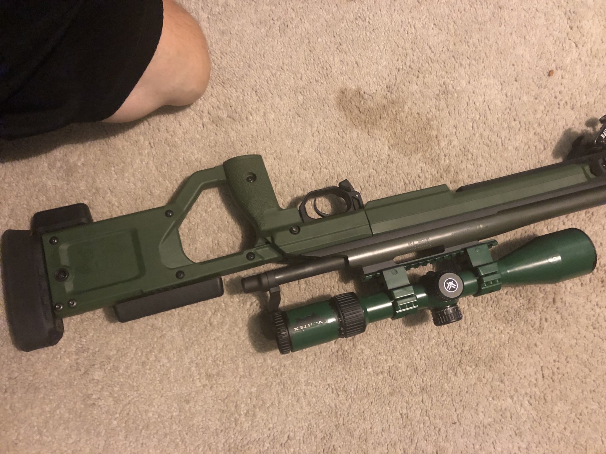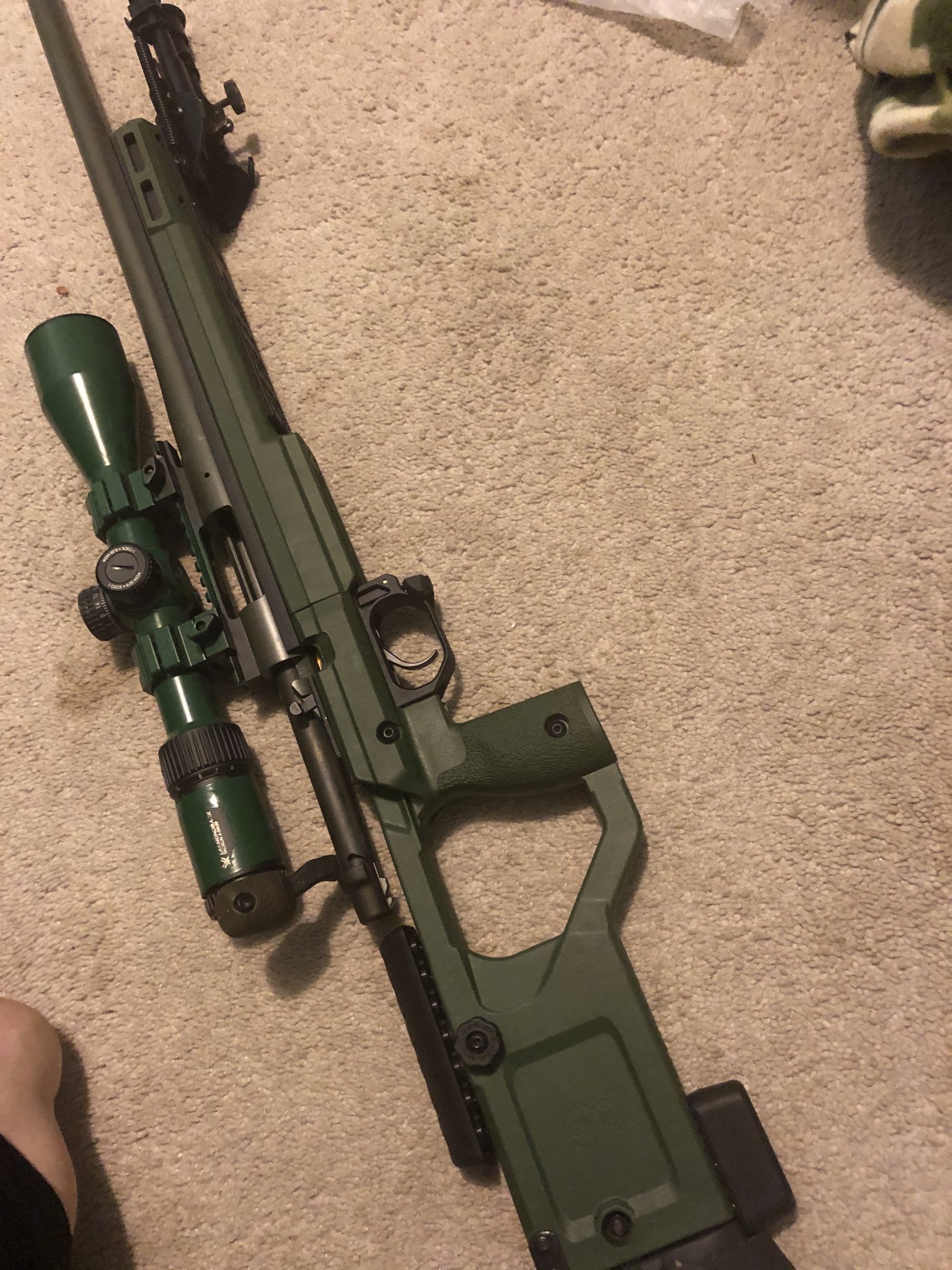 I have a green krg X-ray chassis for shirt action 700 or clones. Included is full length arca rail. I’m swapping everything to mpa so this is the last to move. 425 shipped no trades. PayPal f&f or you pay the fee
