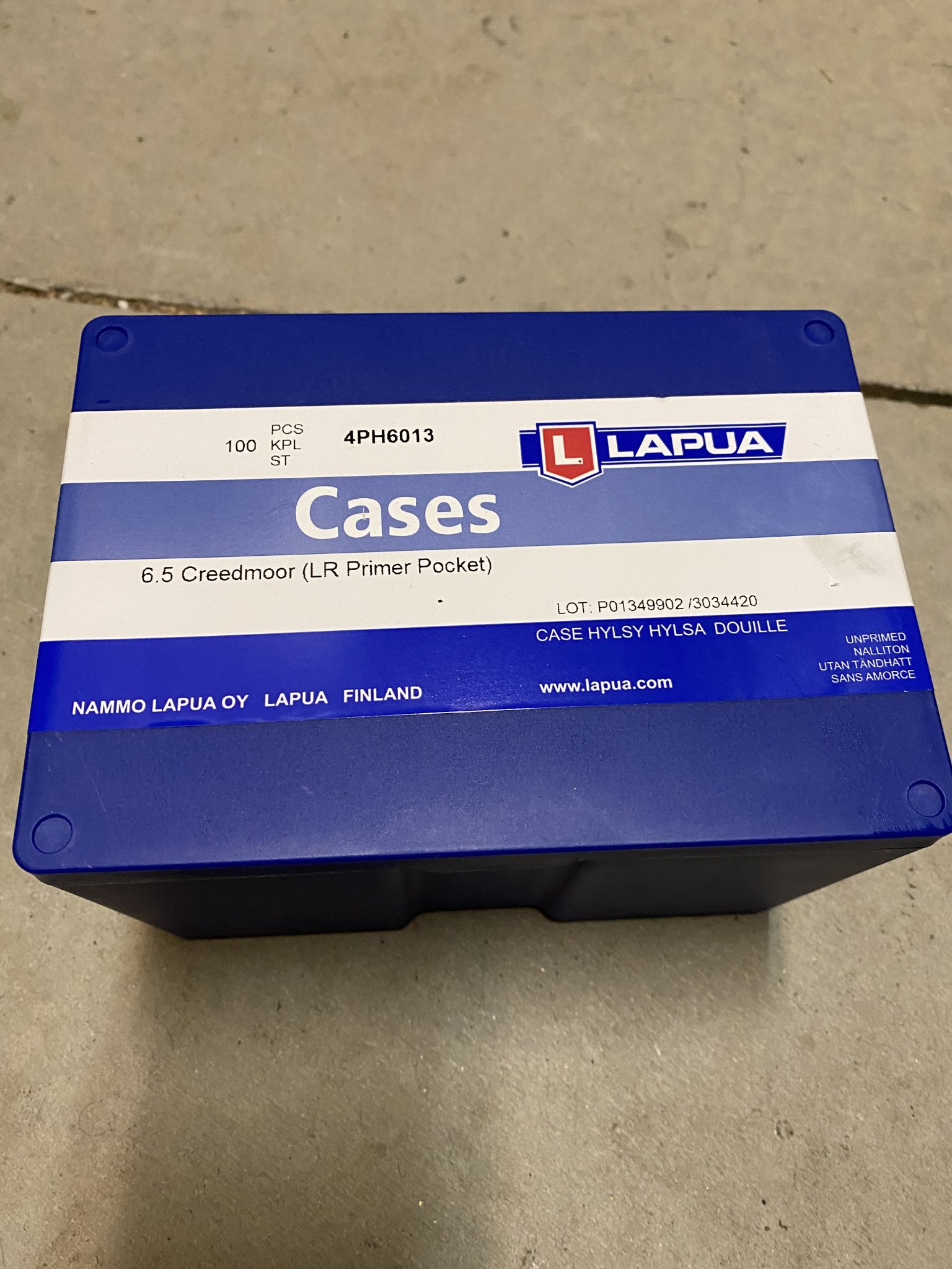 I have 1x unopened box of Lapua 6.5 Creedmoor LRP brass.