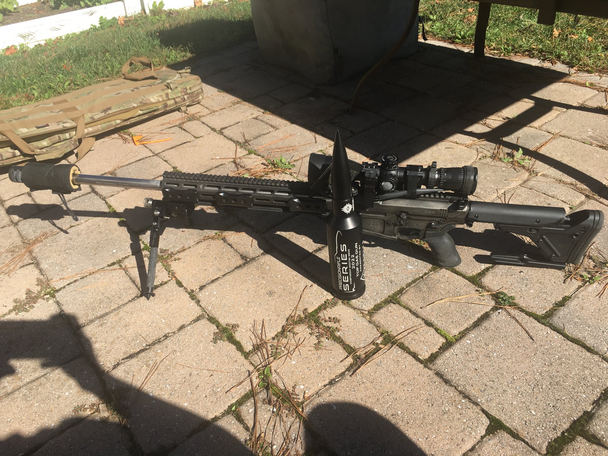 20" 6ARC, 6-24x50 FFP, sunshade really makes it look big, but I shoot in a high sun-intensity environment, so DGAF what it looks like. and the shooting range extends out to 1,500yds. Future builds might use a 5-25x56 FFP, or similar.