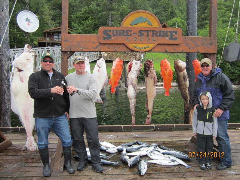 This was one day of fishing at SureStrik lodge out of Craig Alaska there was about 20 more Silvers that are not in the photo, one of the best trips I have been on. I am on the left next to the 200 LB Halibut that took me about 40 min to drag in.