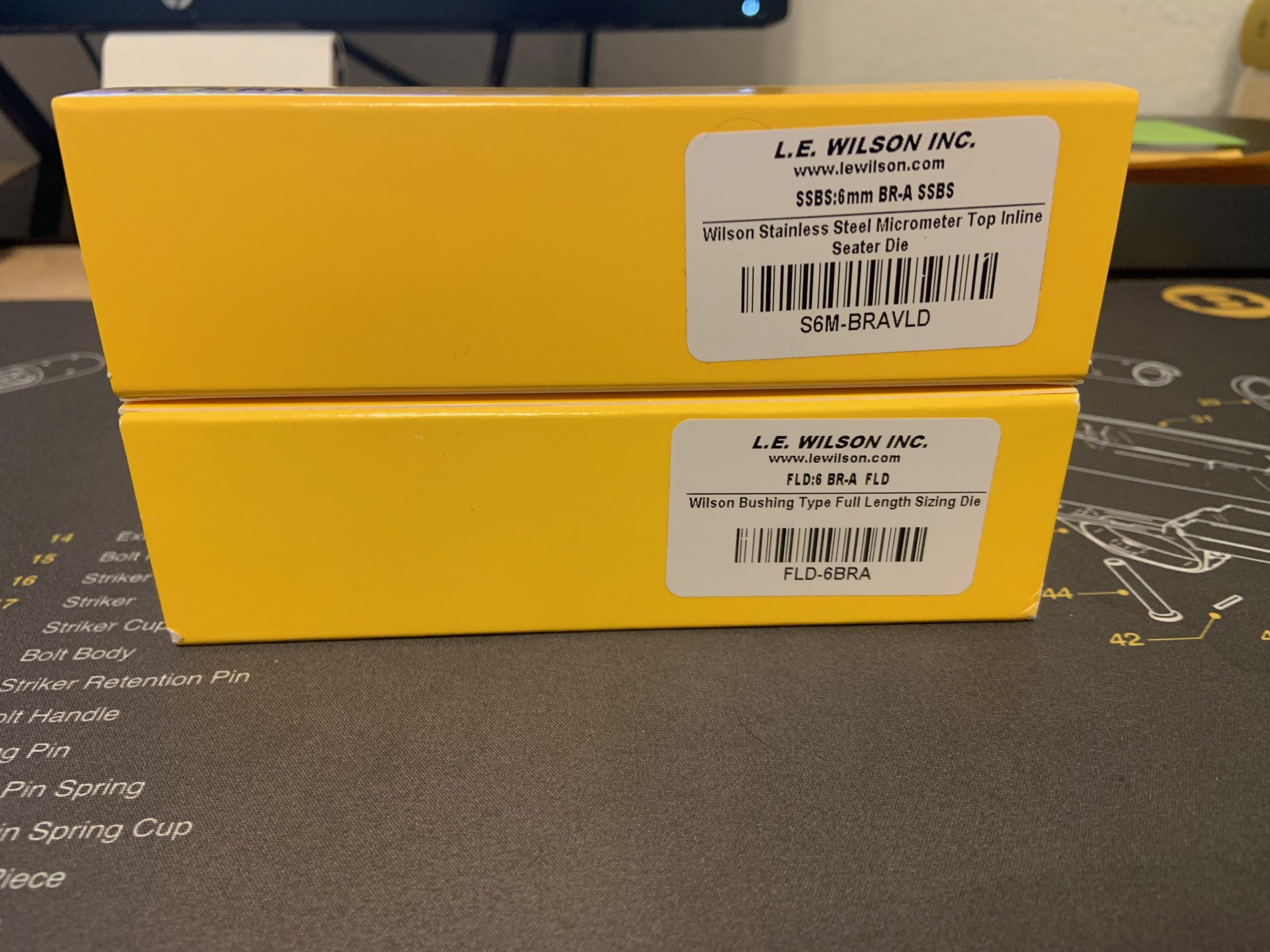 As the title states I am selling a very lightly used set of dies for 6 BRA from LE Wilson.