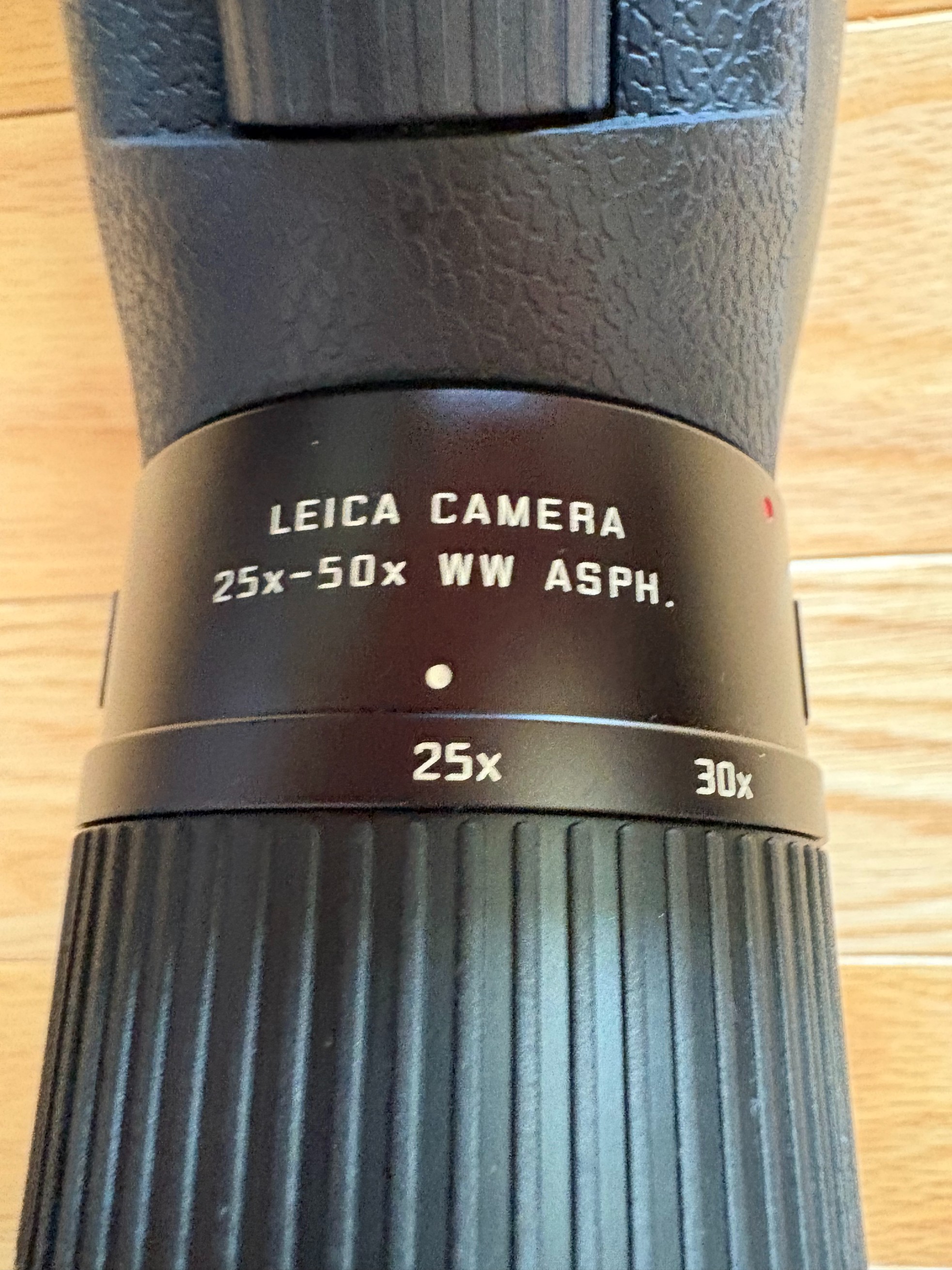 Leica APO-Televid 65 spotting scope, with a Leica 25x–50x wide-angle zoom eyepiece.