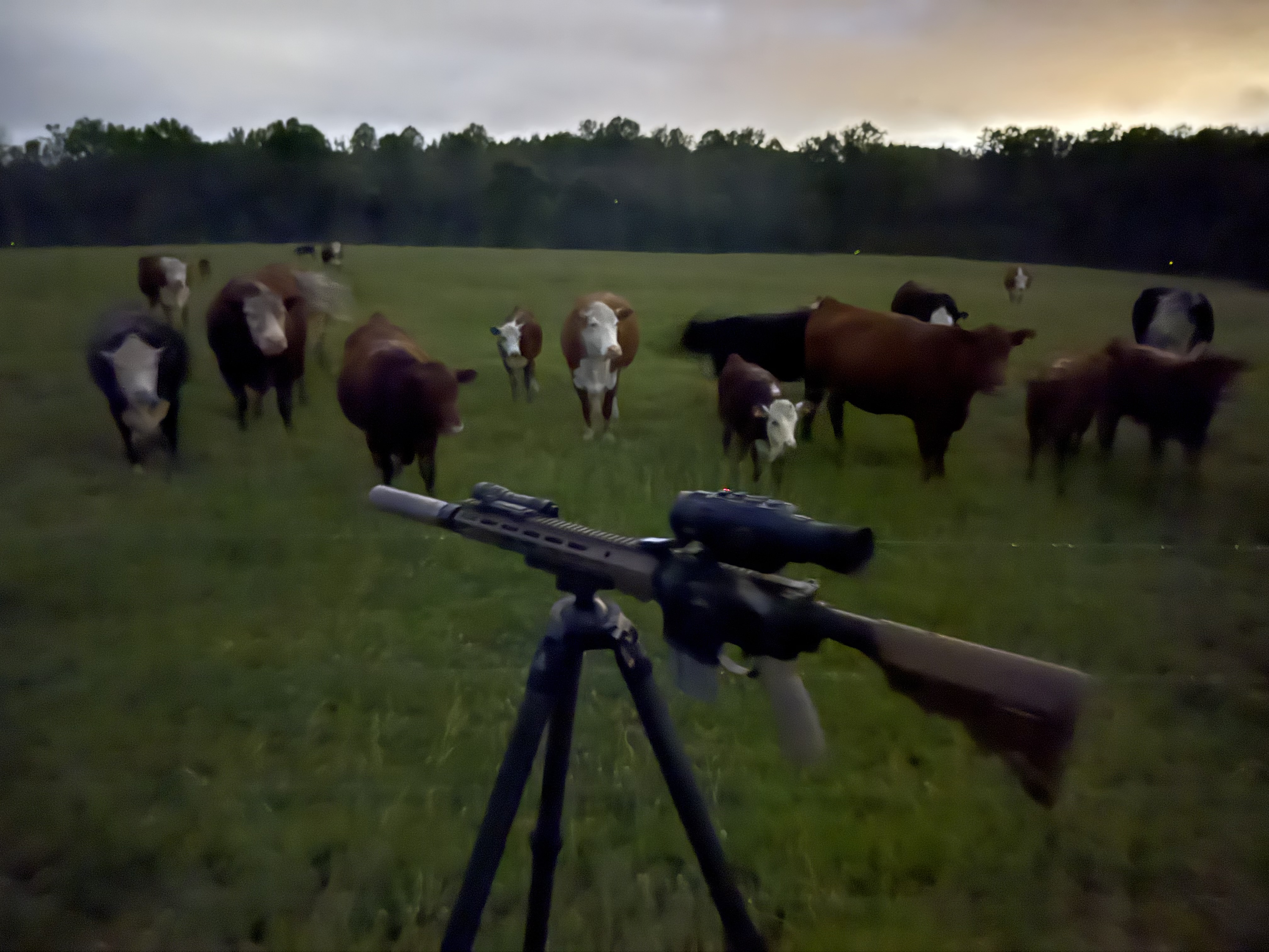 Or where you aren’t expecting them. Those fuckers are light footed in my experience. In my last encounter I wasn’t even after them. I was after hogs. While walking back to my truck I heard what sounded like a piece of a limb fall from a tree. When I got my thermal scanner up there was a yote about 55 yards in front of me. Once I’d knelt, woke up my thermal scope, and raised my rifle he had already hit the timber expeditiously.