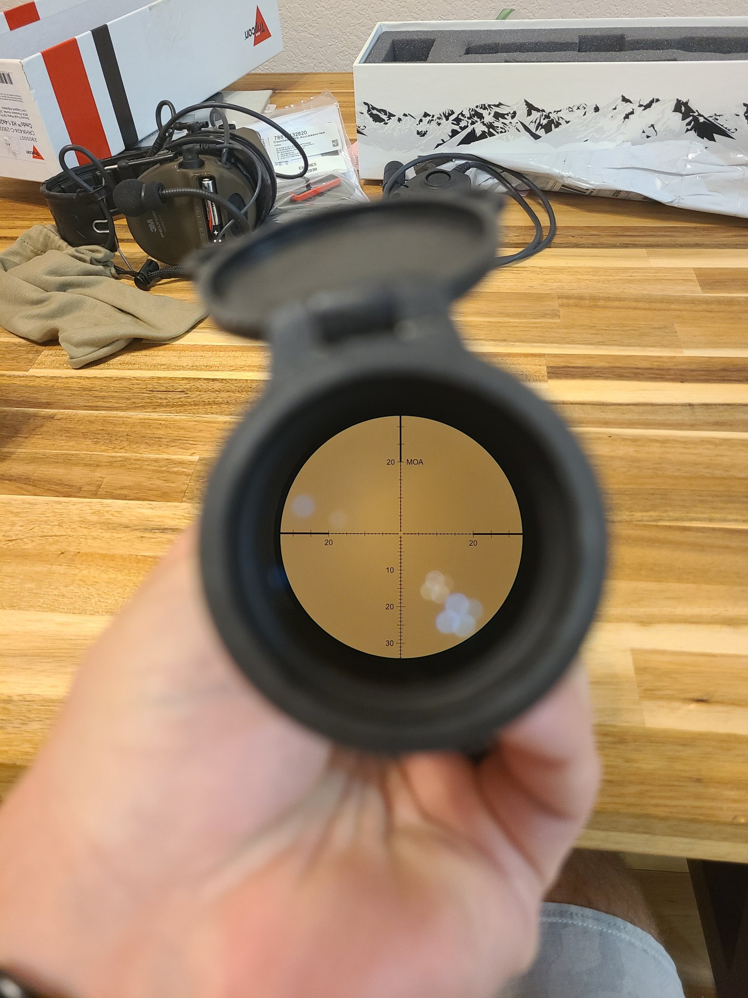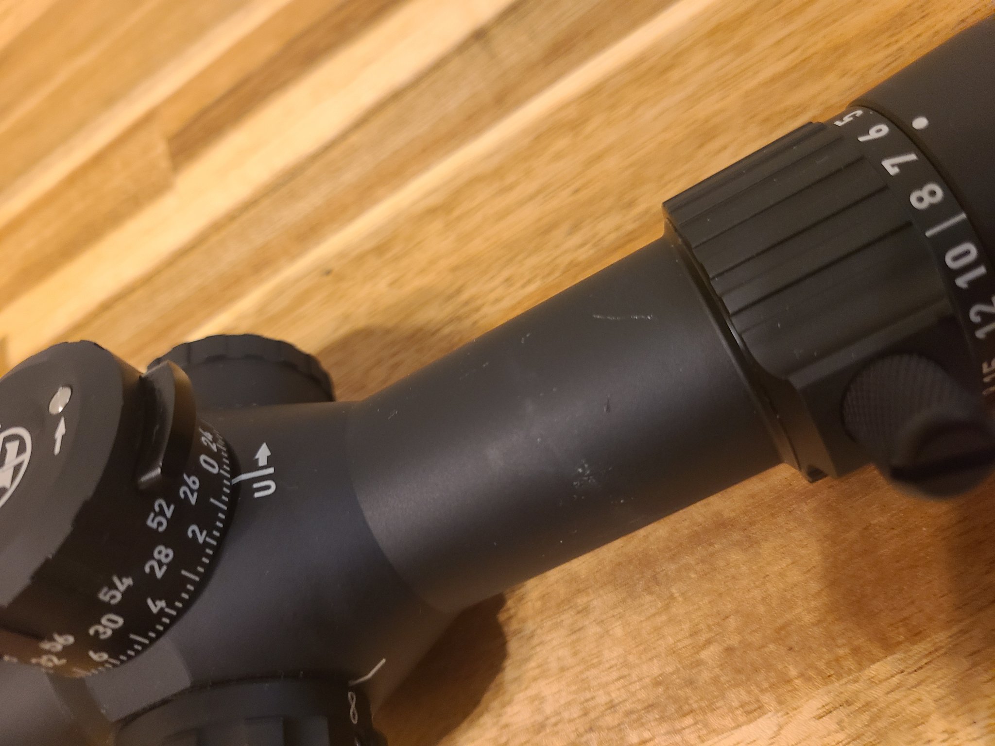 Very faint ring marks, glass is pristine. Actually prefer the turret clicks on this scope over my Tremor 3 model, very crisp. Comes with scope caps.