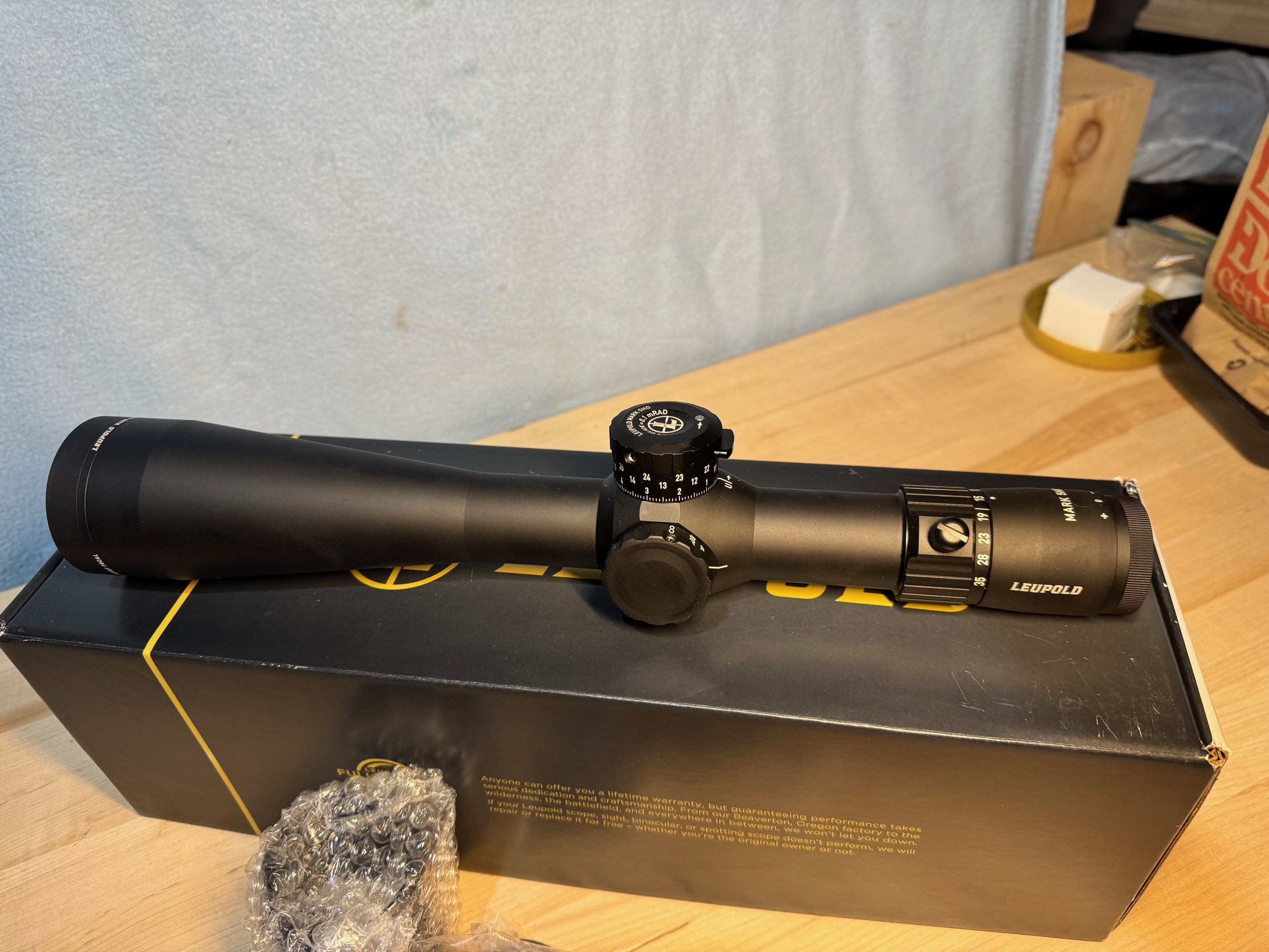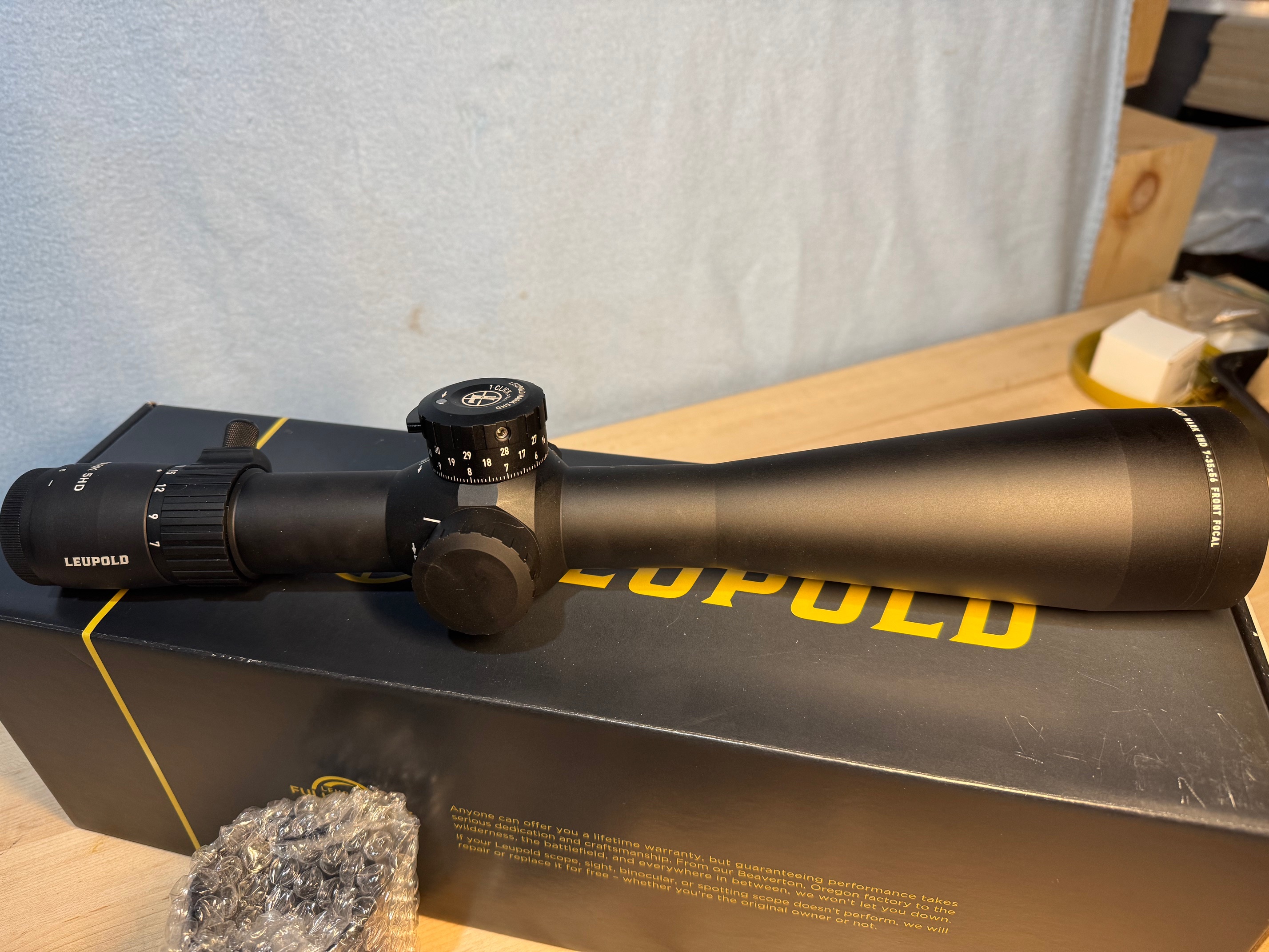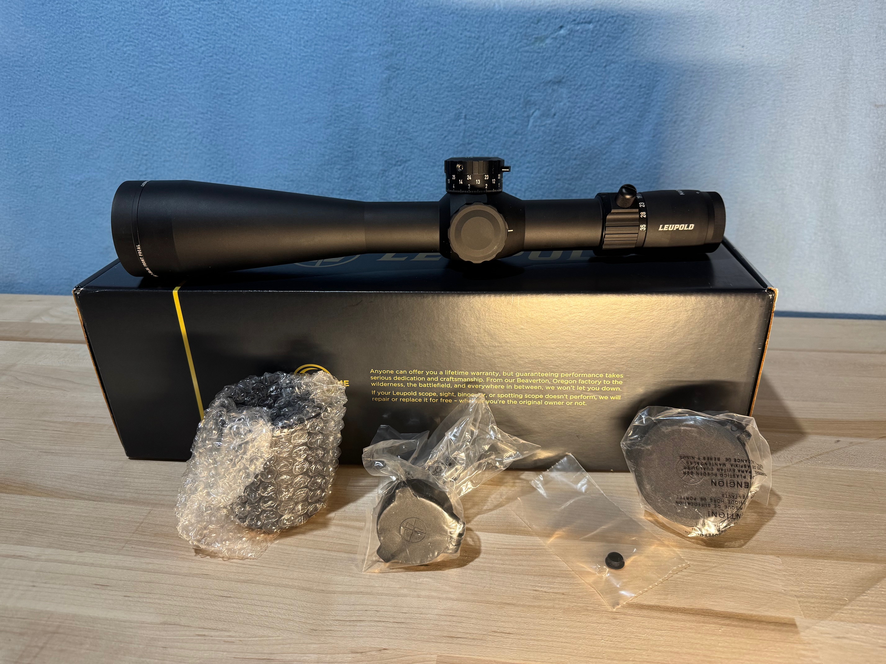 It's new and never mounted, but it has been out of the box several times. The one end of the box had the serial number and bar code cut out for proof of purchase, for the Leupold rebate. Model number 174546, I'm selling all my longer-range guns, Optics, bipods, and many Area 419 and Atlas bipods. I will have them listed in the next few days—this scope I bought in the hopes of using it for local PRS matches and hunting. But that's not going to happen. The scope is in excellent condition. Buyer pays shipping. I usually ship USPS Priority 3-day. I will send you the shipping cost if you give me your address.