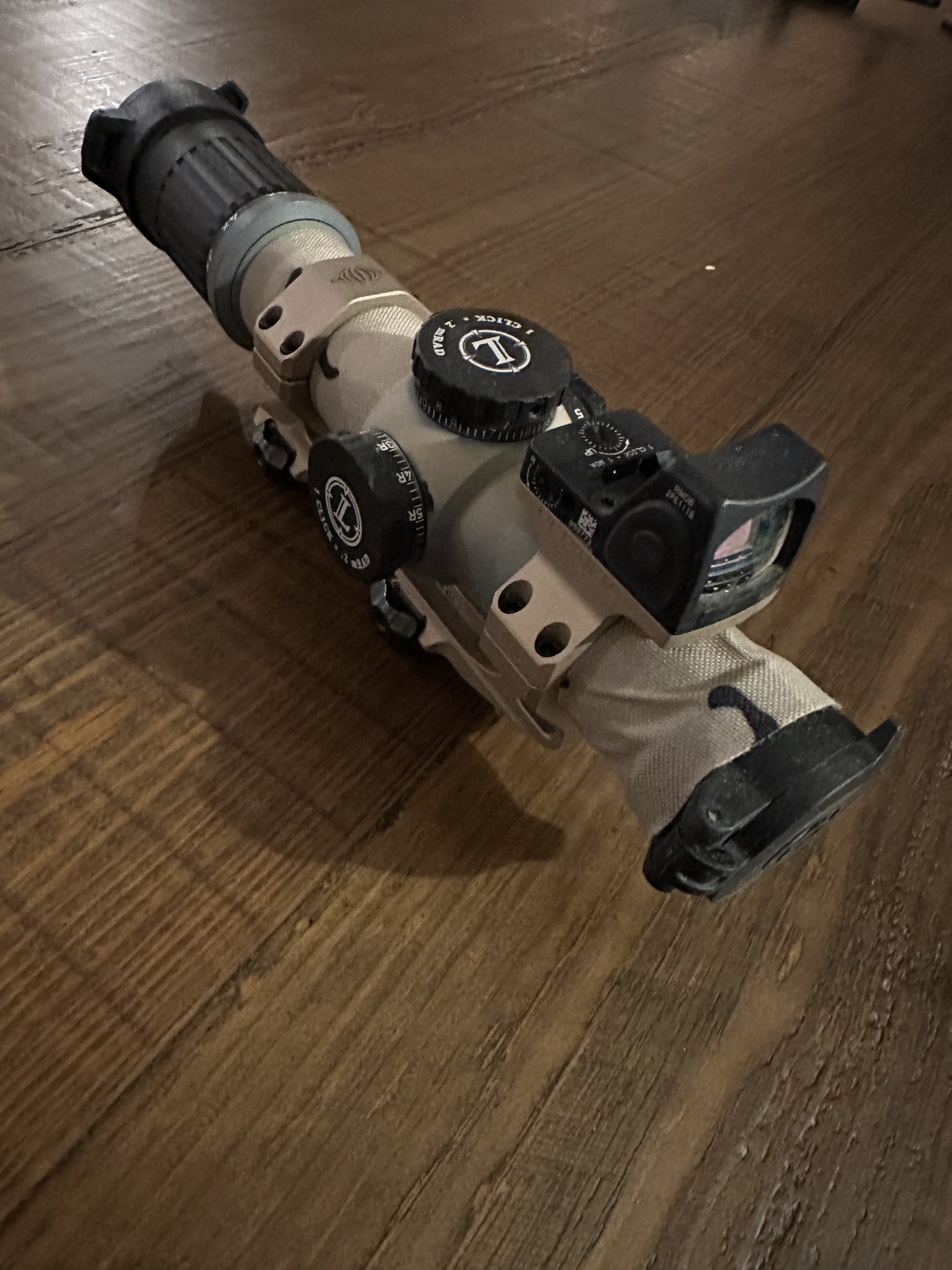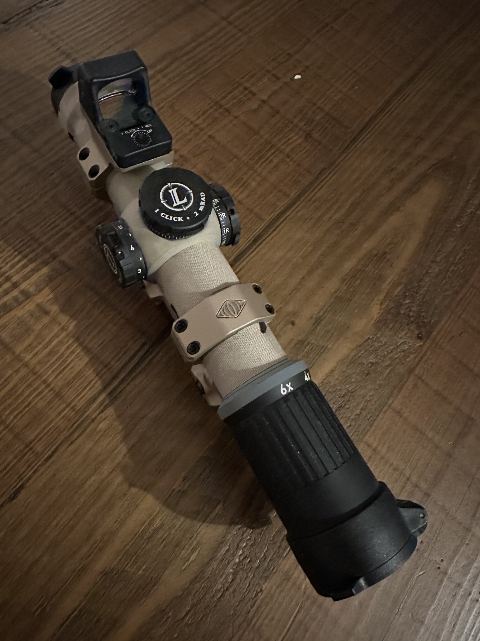 Leupold MK6 1-6 LPVO in excellent shape. Painted and wrapped as shown in pics. Glass is perfect. Includes flip caps, does not include mount or RMR.