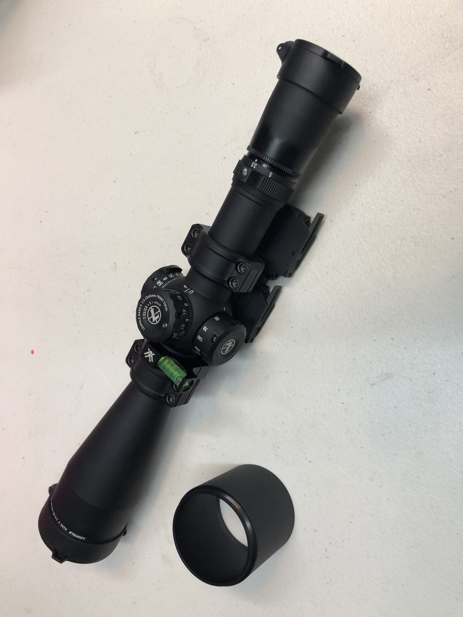 Scope with sunshade, caps, Bobro 35mm Dual Lever Mount, Vortex Bubble Level $SPF