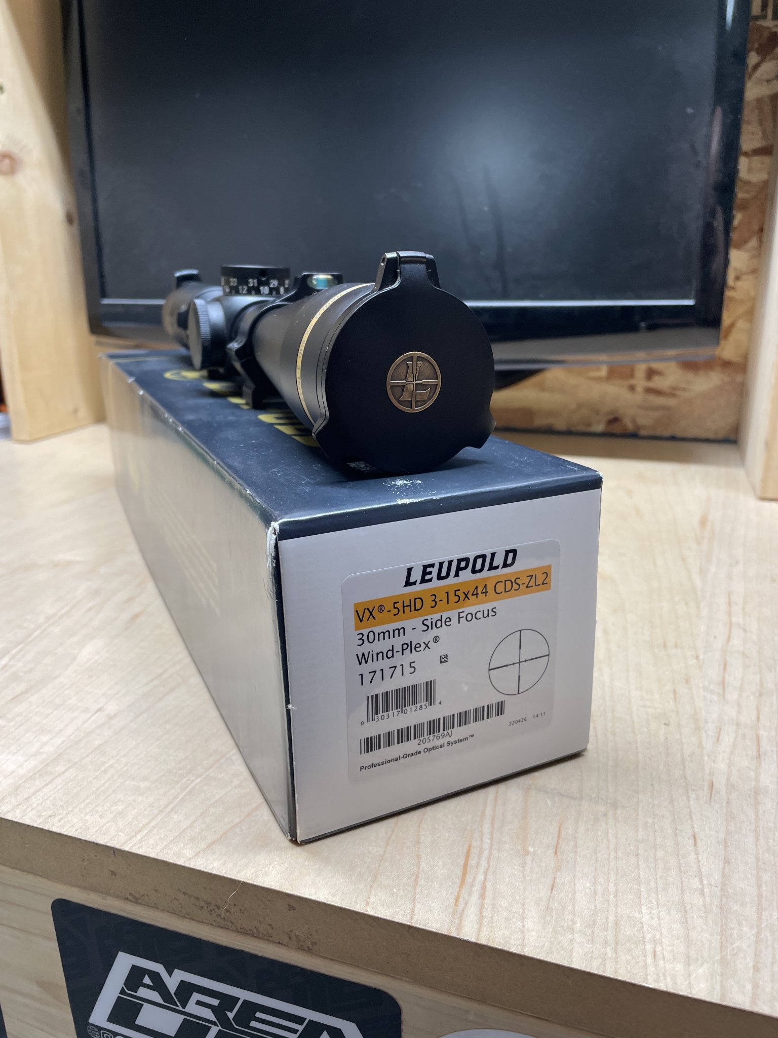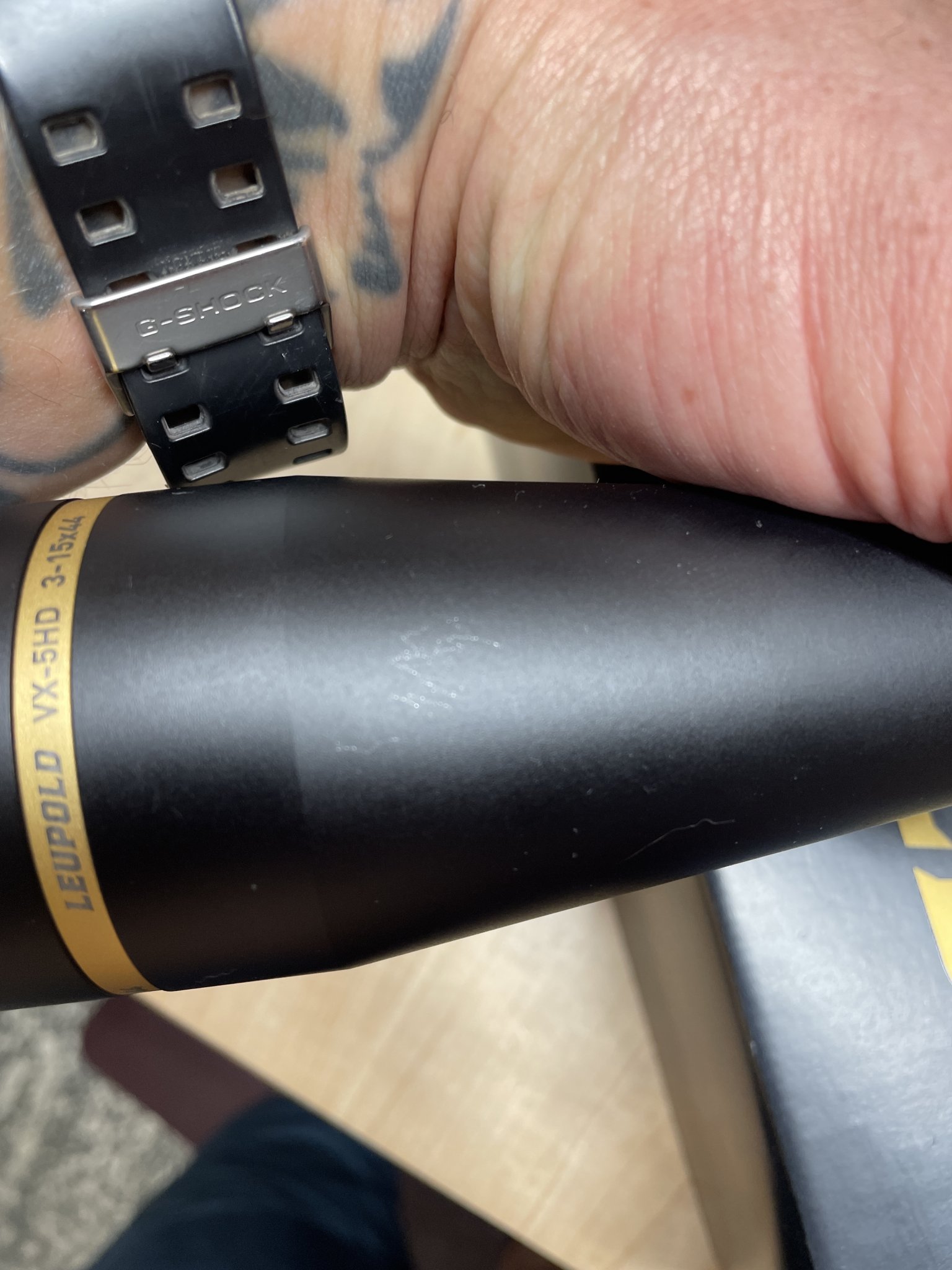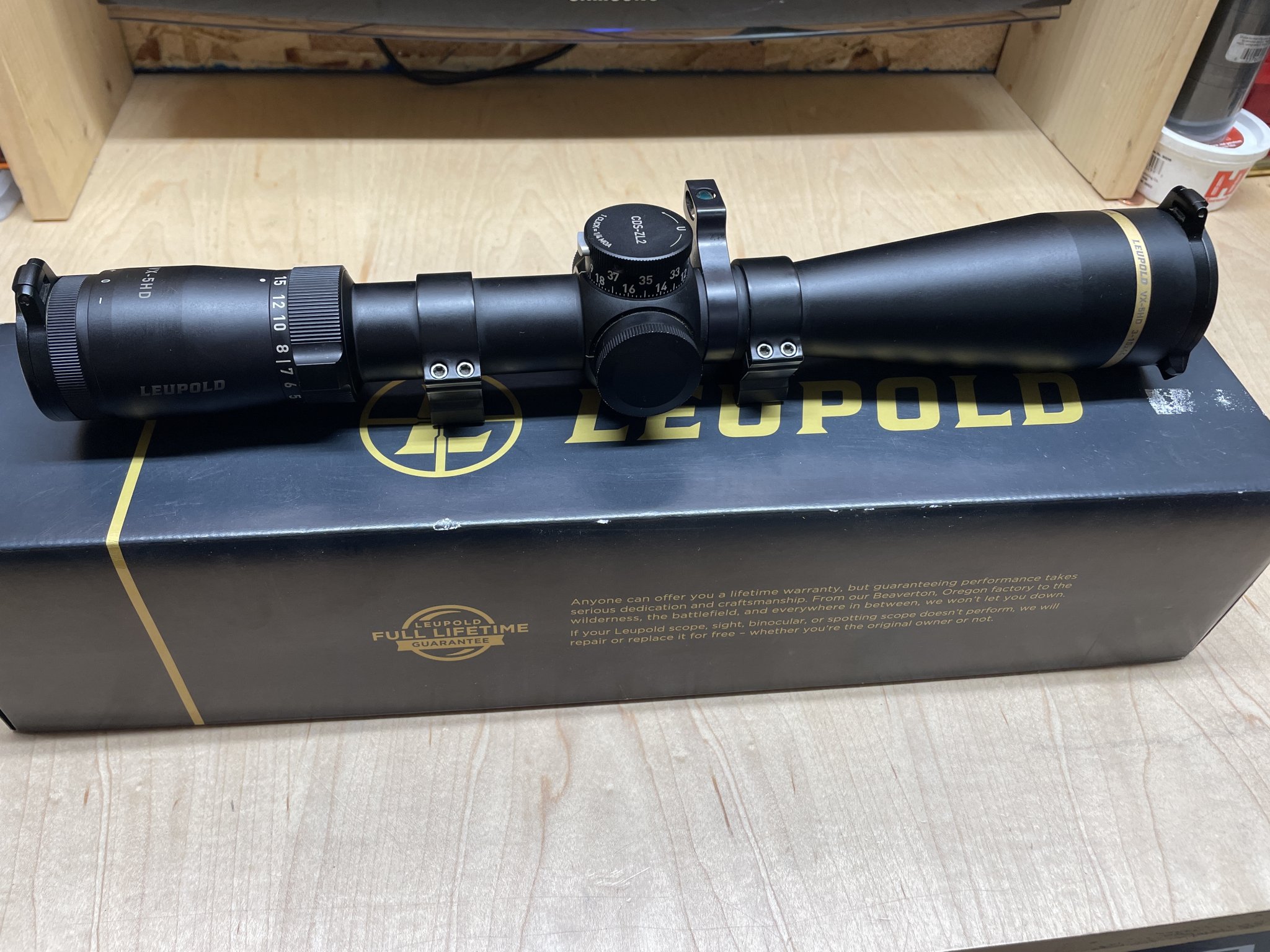 Leupold VX5HD 3-15x44 with windplex reticle in MOA. One scratch on the bell and the windage cap has wear on the bottom knurling. Comes with Mark 4 rings, alumina flip up caps front and rear and a vortex lopro bubble level. Comes in original box with all the stuff that it ships with. The free cds dial has already been redeemed. $750 shipped, pay pal f&f preferred