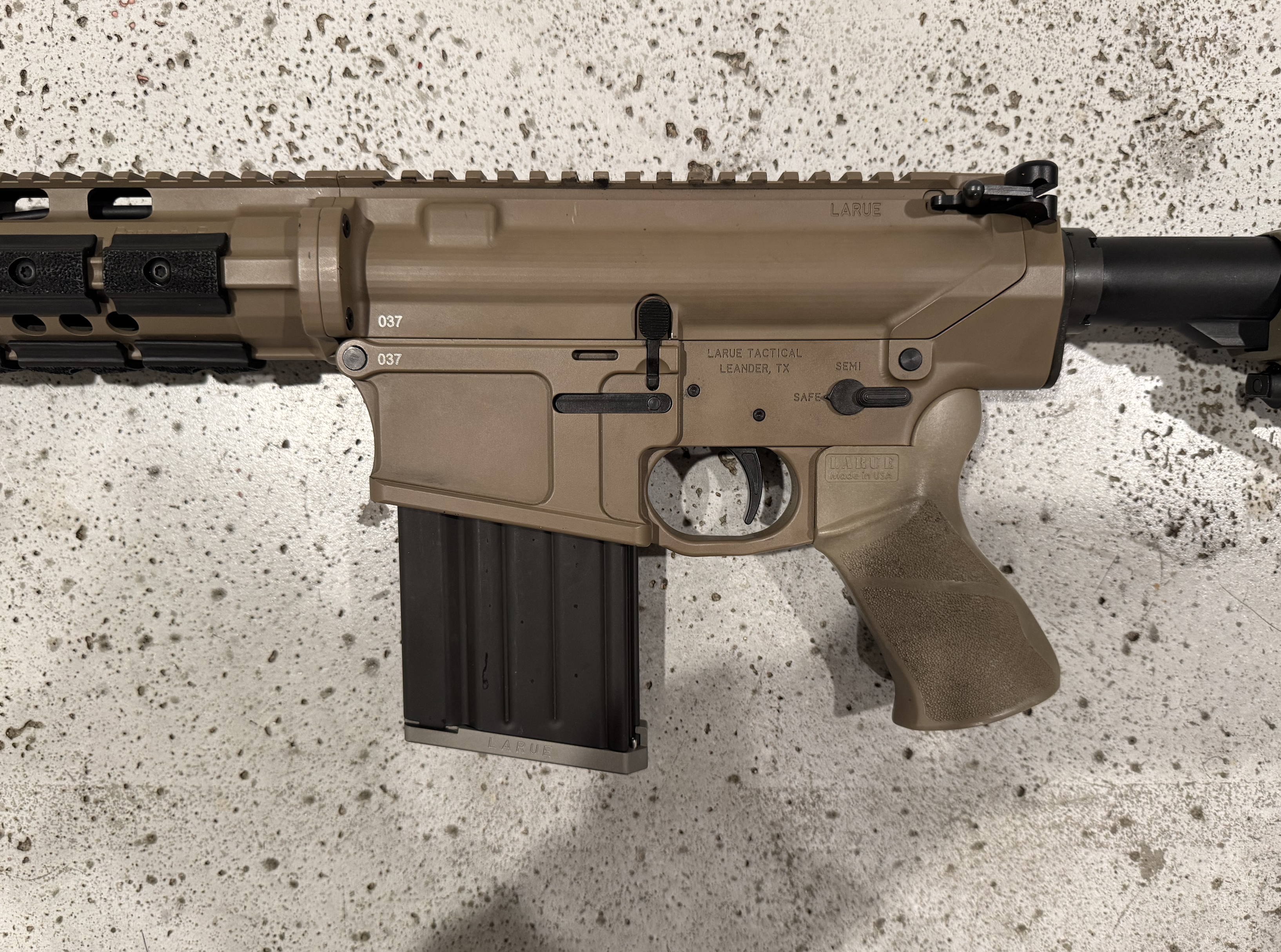 Selling a Limited Edition Larue PredatAR in 7.62 FDE. This rifle is #37/125 with numbers matching upper and lower receiver. Has ~300 rounds through it, shoots great just doesn't get much use anymore and Im clearing up some room in the safe. Comes with 1 Larue mag.
