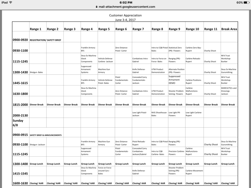 Check out the weekend that LMS Defense put on for its customers. That is a lot of courses for $200.00.