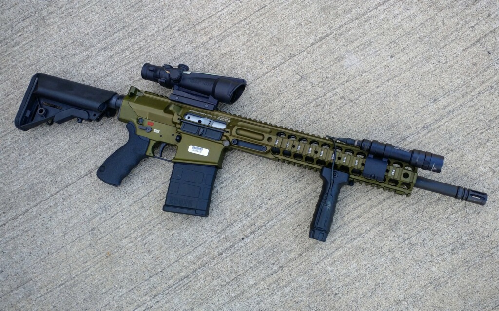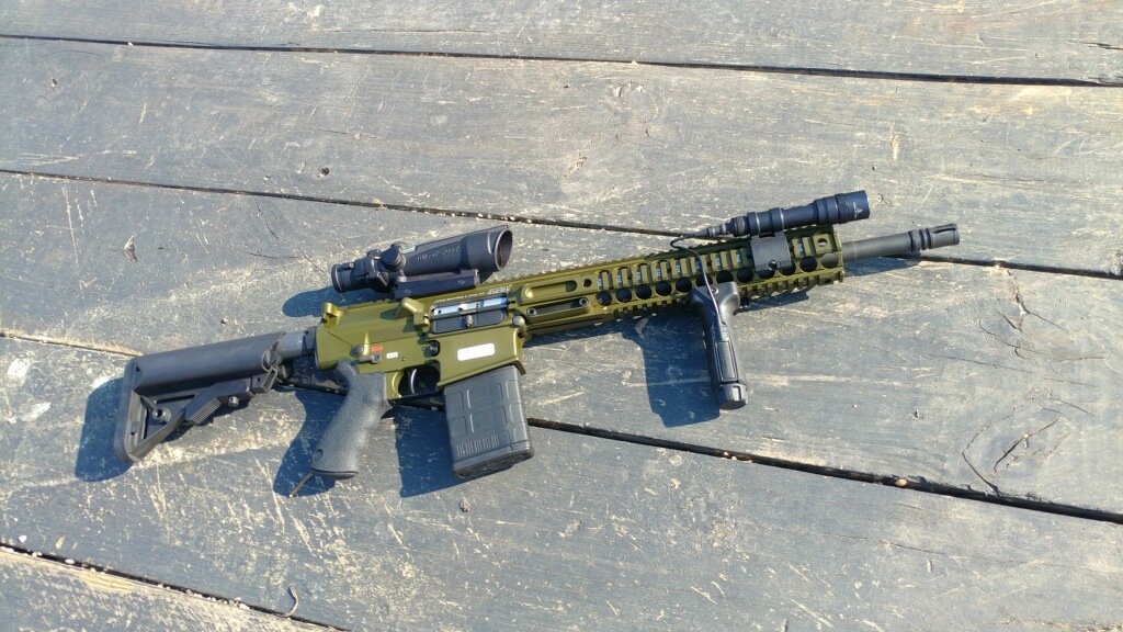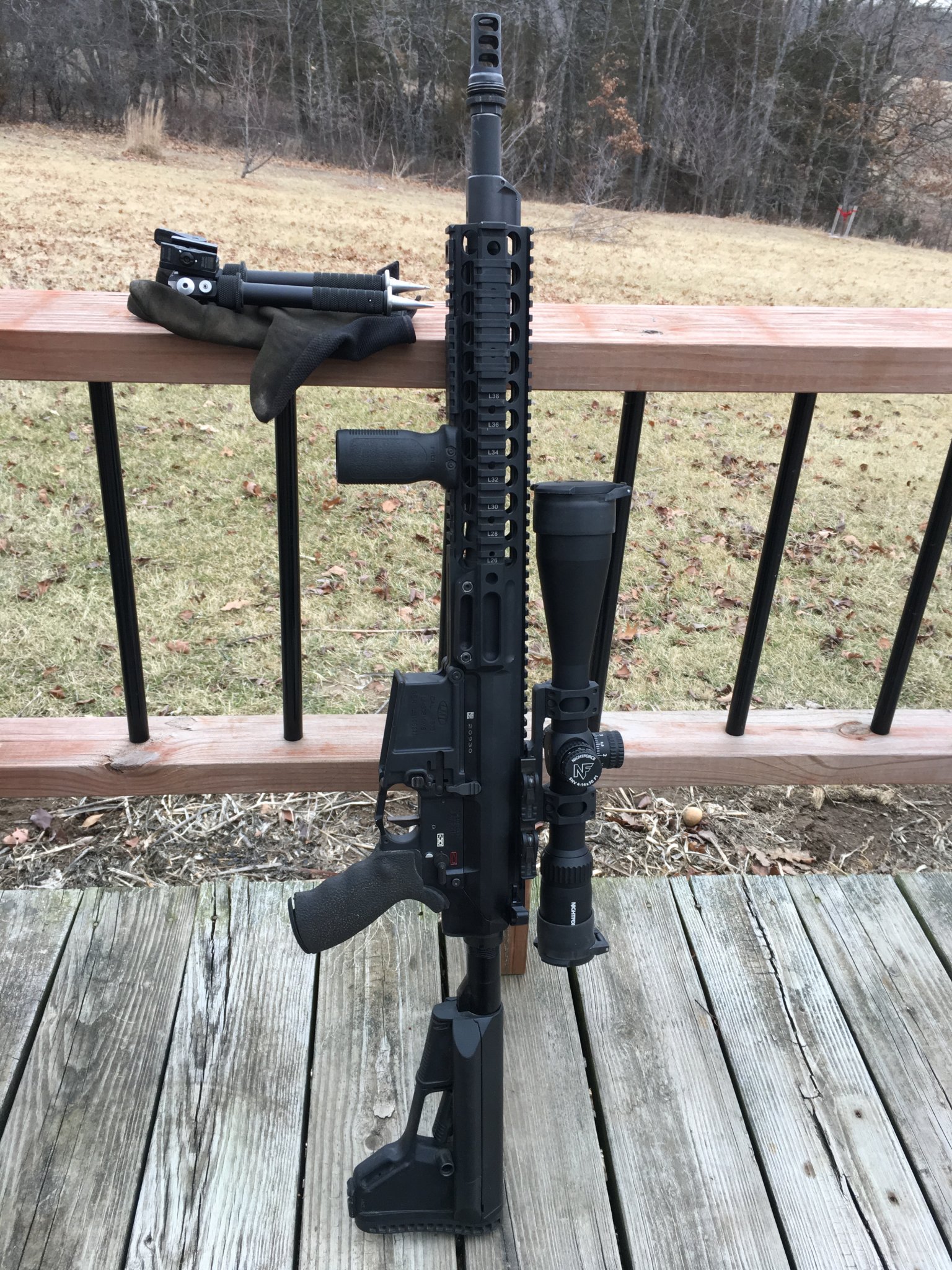 Hasn’t been stock since day 1 but settled on this setup for a while now. Springco orange spring and standard weight rifle buffer cut out unnecessary recoil of the extra heavy stainless buffer I thought I “needed”.