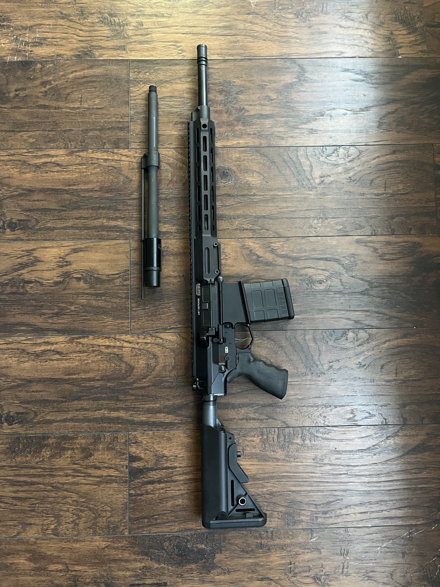 Unfortunately have to part ways with this rifle. The 18” 6.5cm stainless steel barrel has never been fired. The 16” .308 lightweight chrome-lined barrel has about 150 rounds through it. $3500