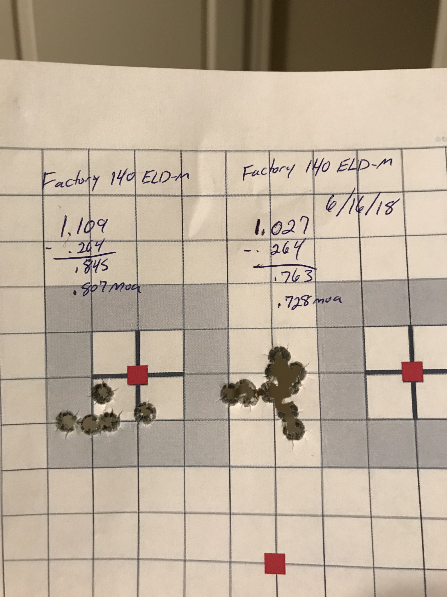 My GF’s first group, and first time shooting at 100yds was a .58moa group iirc. I followed it up with a nice 4shot group with the one shot drifting out of the same hole. Factory Hornady 140 eld-m.
